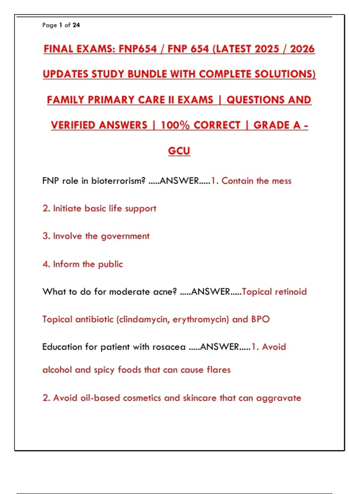 FAMILY PRIMARY CARE II EXAMS | QUESTIONS AND