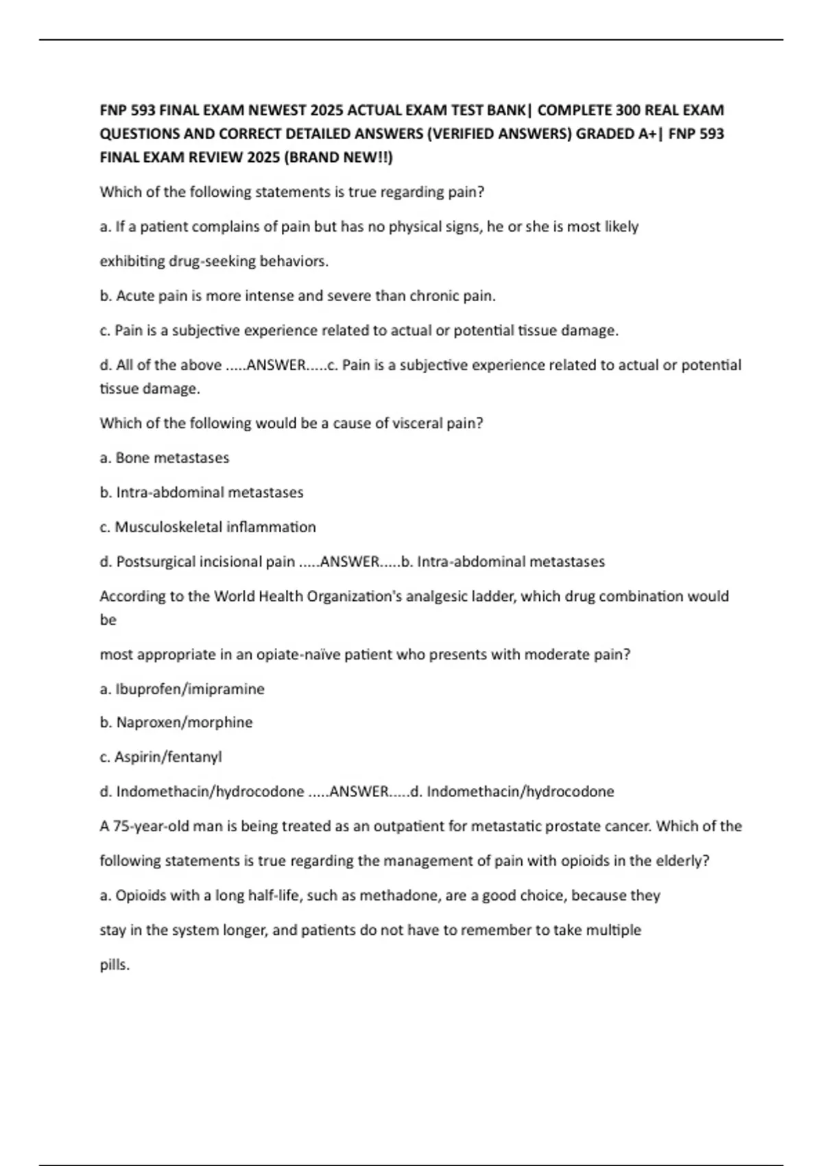 QUESTIONS AND CORRECT DETAILED ANSWERS (VERIFIED ANSWERS) GRADED A+| FNP 593