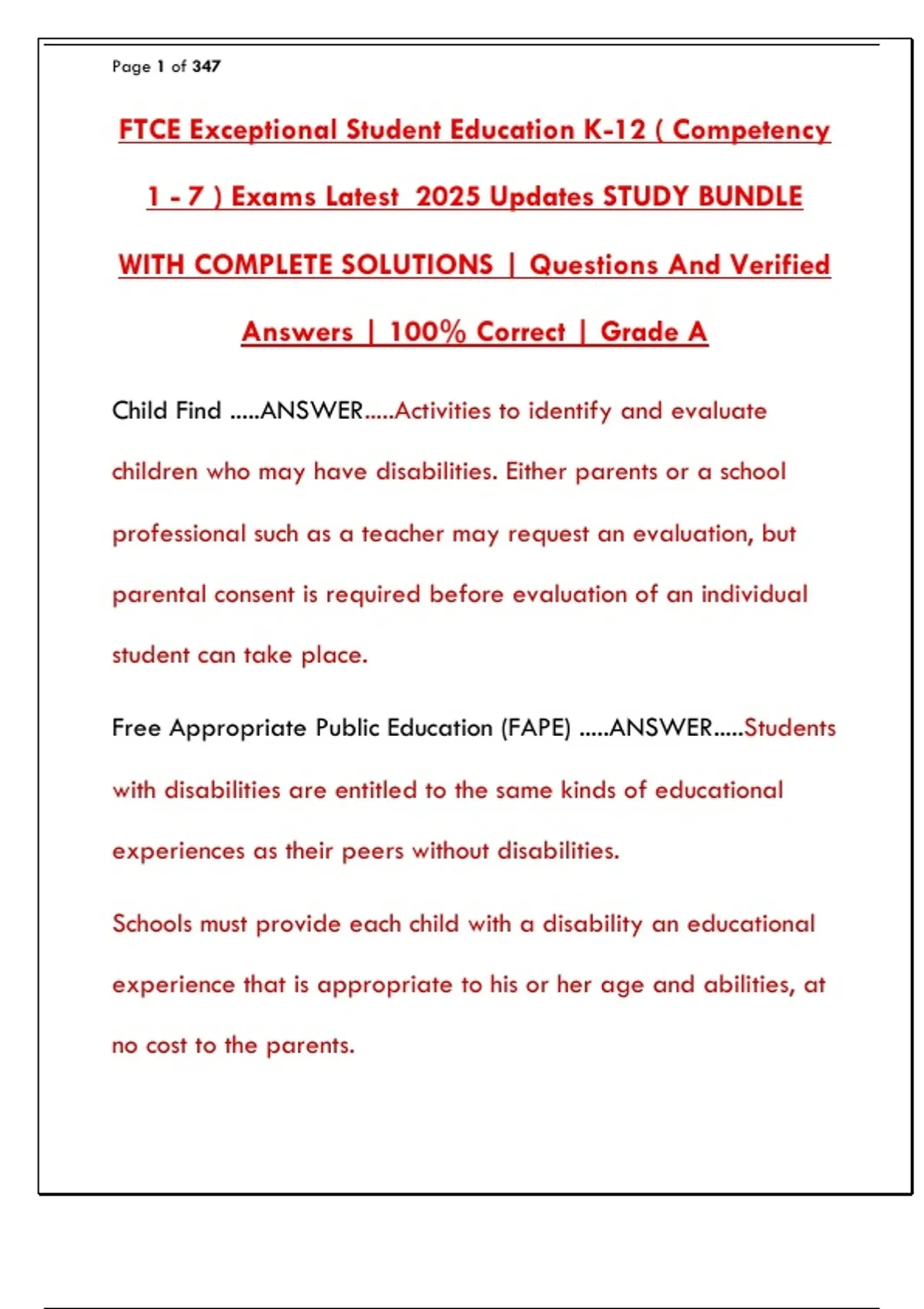 Free Appropriate Public Education (FAPE) .....ANSWER.....Students