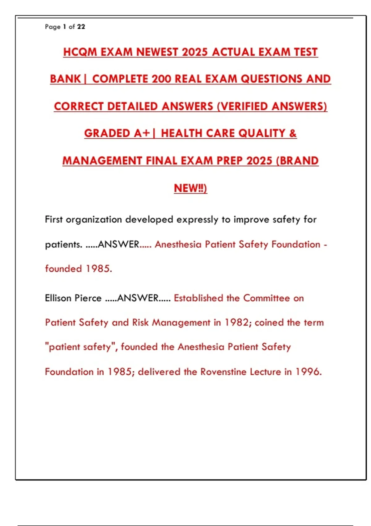 Pass the HCQM (Healthcare Quality & Management) Exam in 2025. Get the newest actual exam test bank with verified questions and answers for healthcare quality certification.