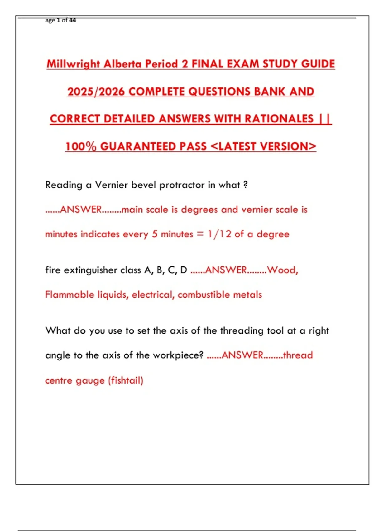 Millwright Alberta Period 2 FINAL EXAM STUDY GUIDE