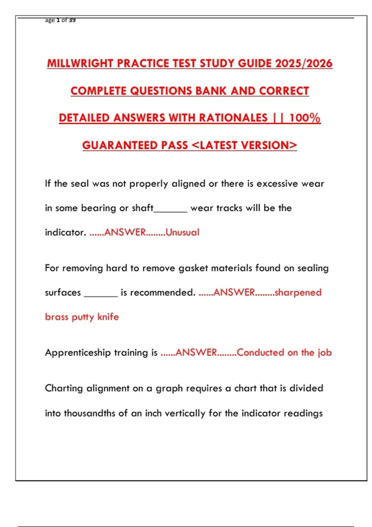 MILLWRIGHT PRACTICE TEST STUDY GUIDE 2025/2026