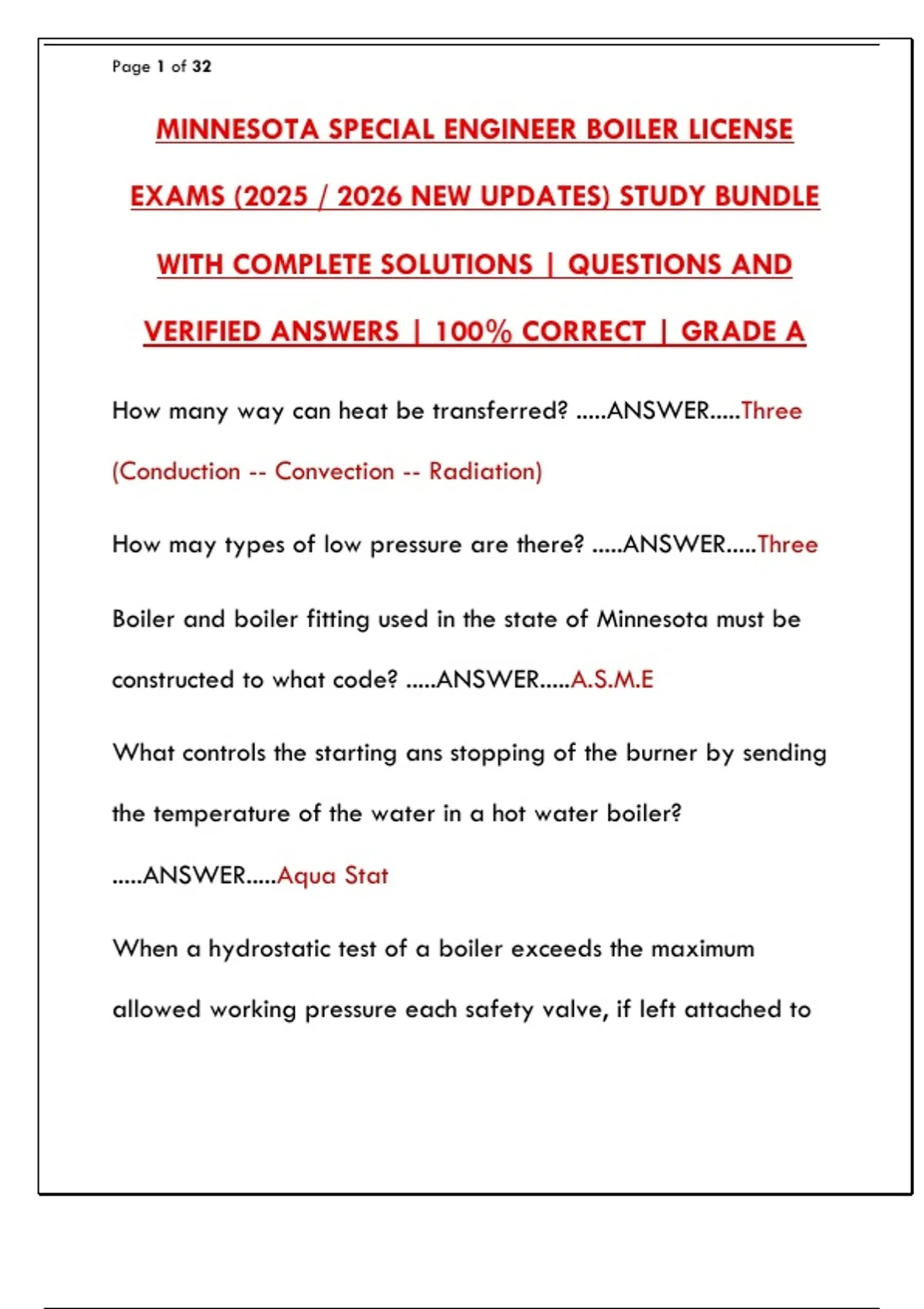 Minnesota Special Engineer Boiler License Exams 2025: Study Guide & Practice Test