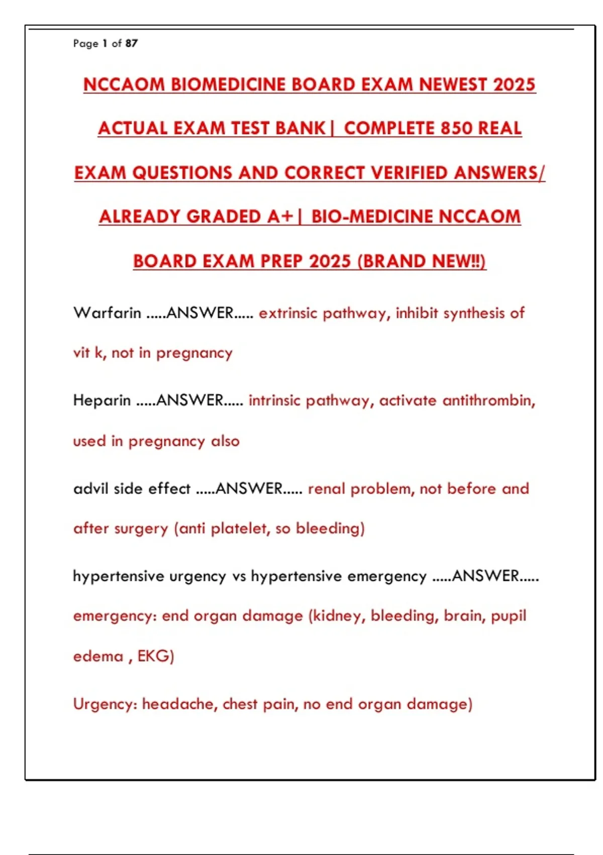 ALREADY GRADED A+| BIO-MEDICINE NCCAOM