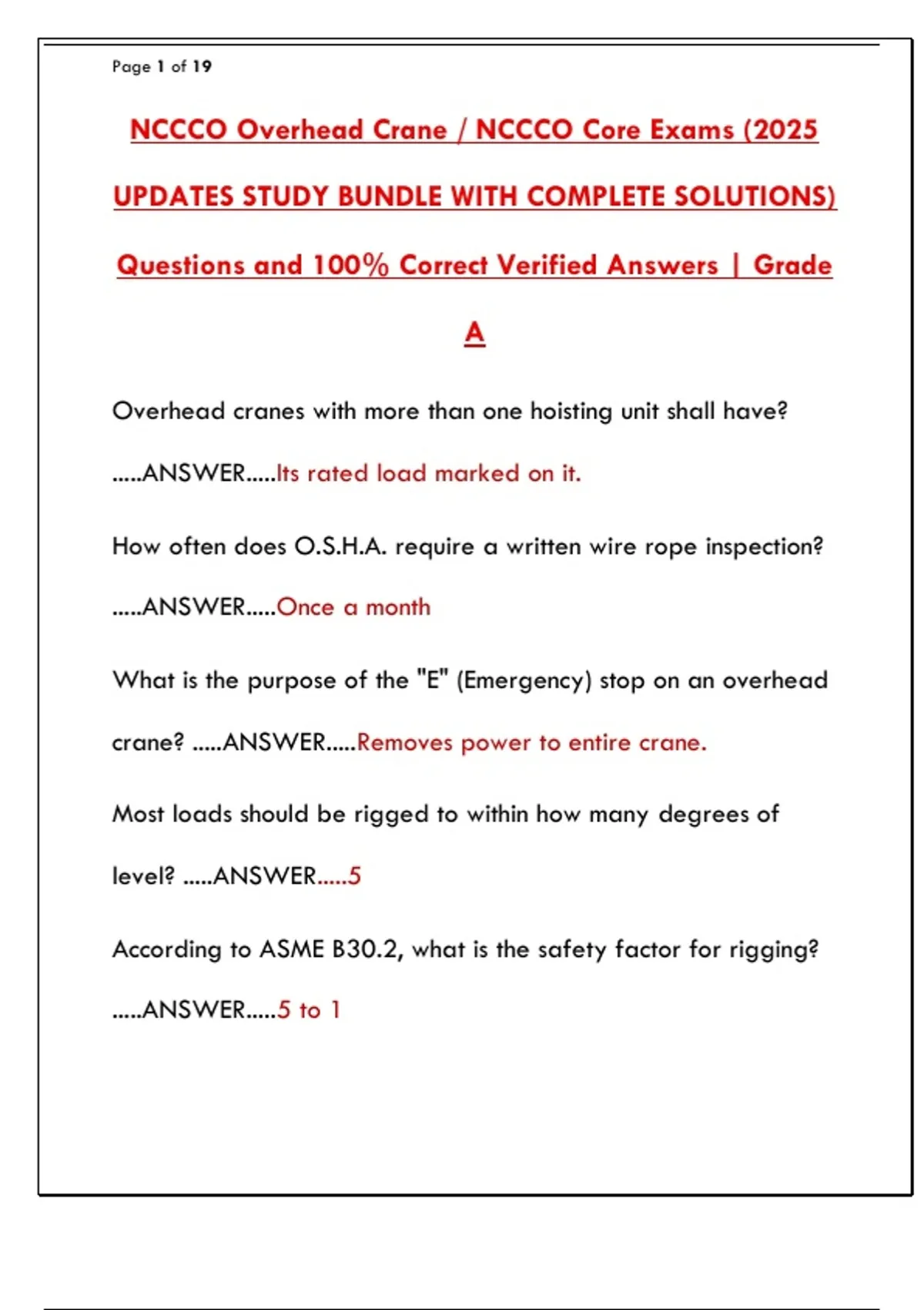 NCCCO Overhead Crane / NCCCO Core Exams (2025