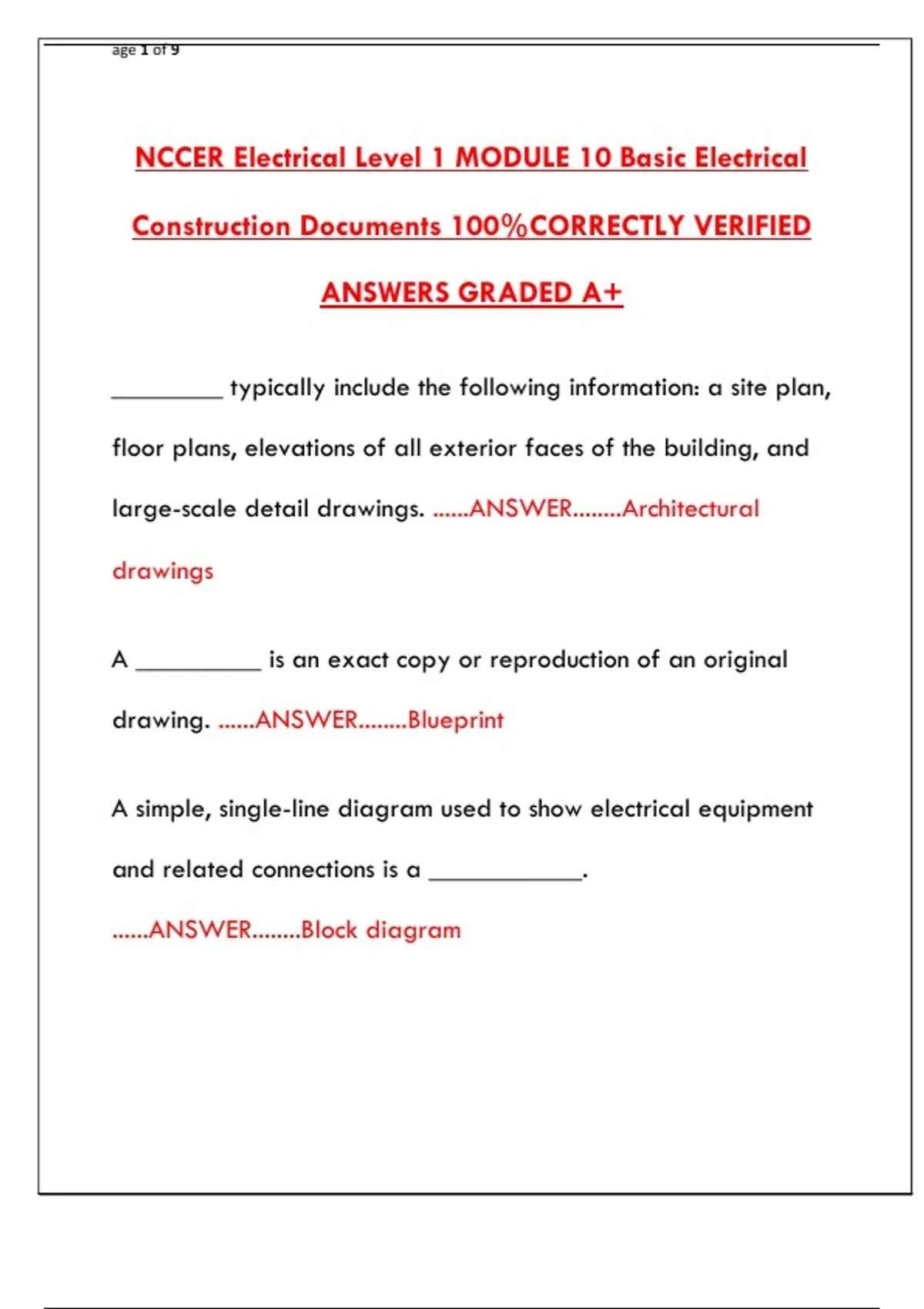 ANSWERS GRADED A+