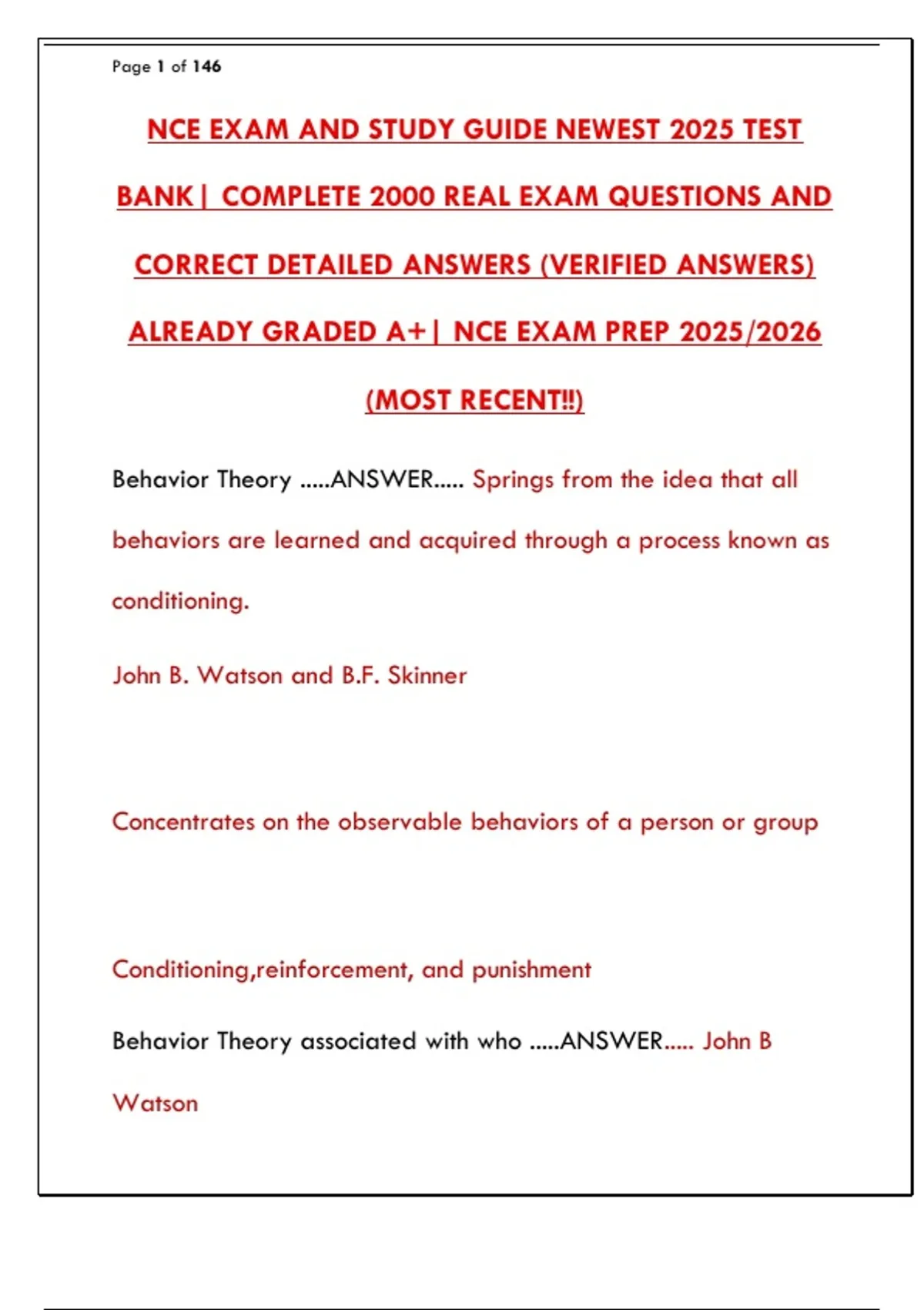 ALREADY GRADED A+| NCE EXAM PREP 2025/2026