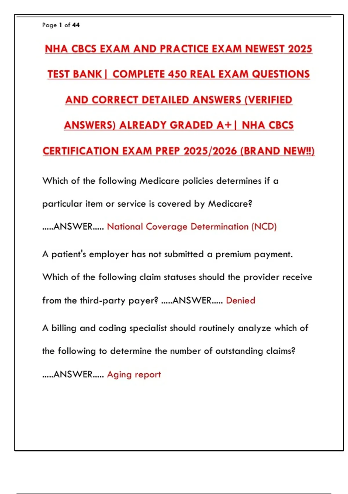 ANSWERS) ALREADY GRADED A+| NHA CBCS