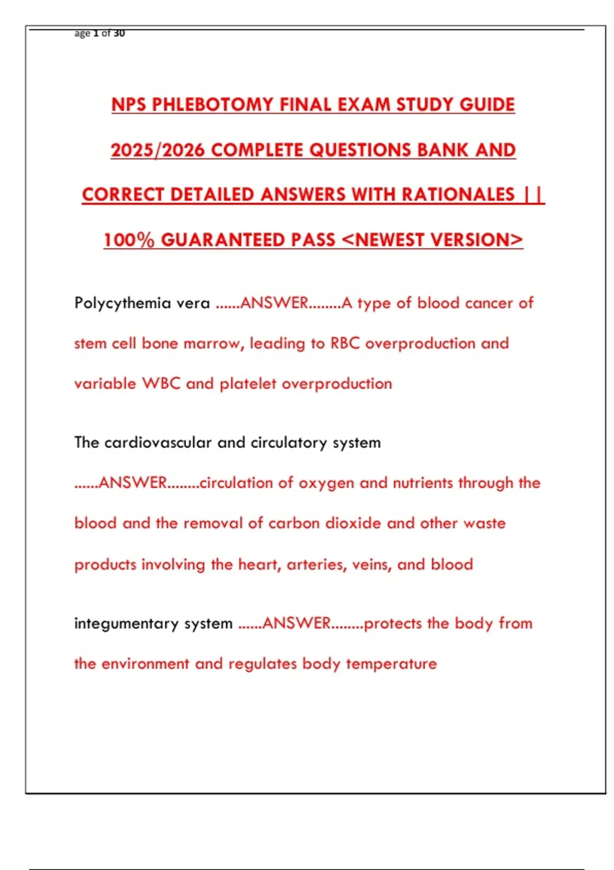 NPS PHLEBOTOMY FINAL EXAM STUDY GUIDE