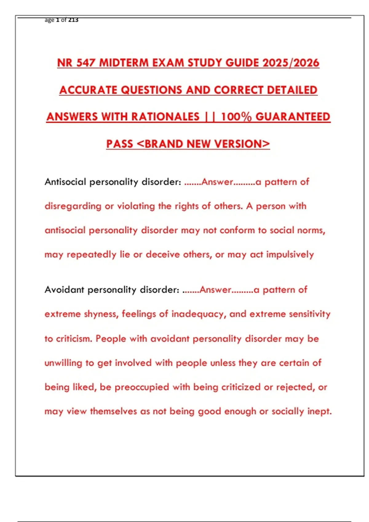 ACCURATE QUESTIONS AND CORRECT DETAILED