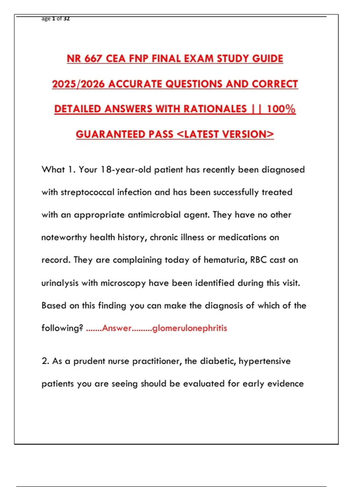NR 667 CEA FNP FINAL EXAM STUDY GUIDE