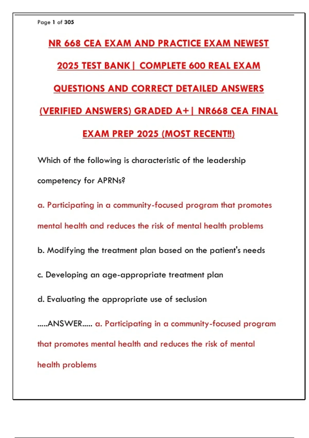(VERIFIED ANSWERS) GRADED A+| NR668 CEA FINAL