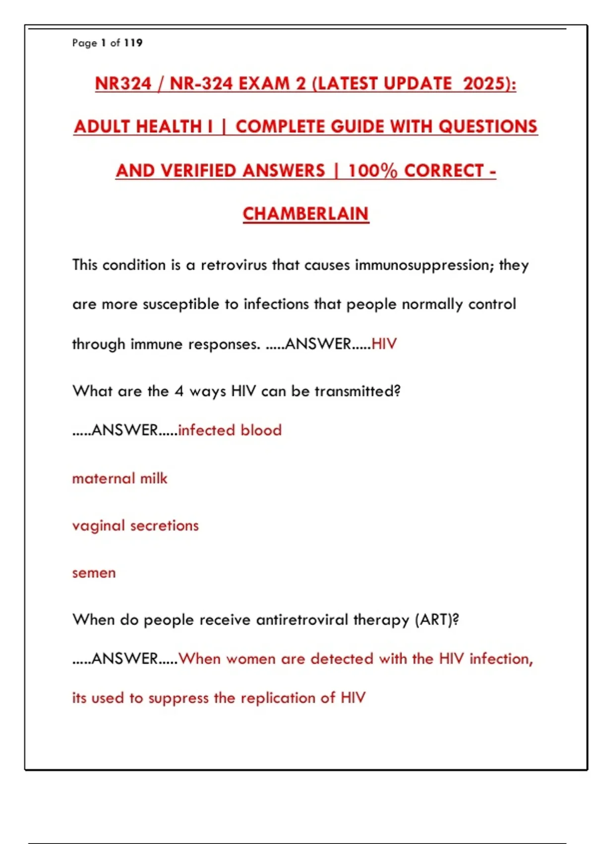 NR 324 Exam 2 Study Guide 2025: Adult Health II Practice Questions & Review