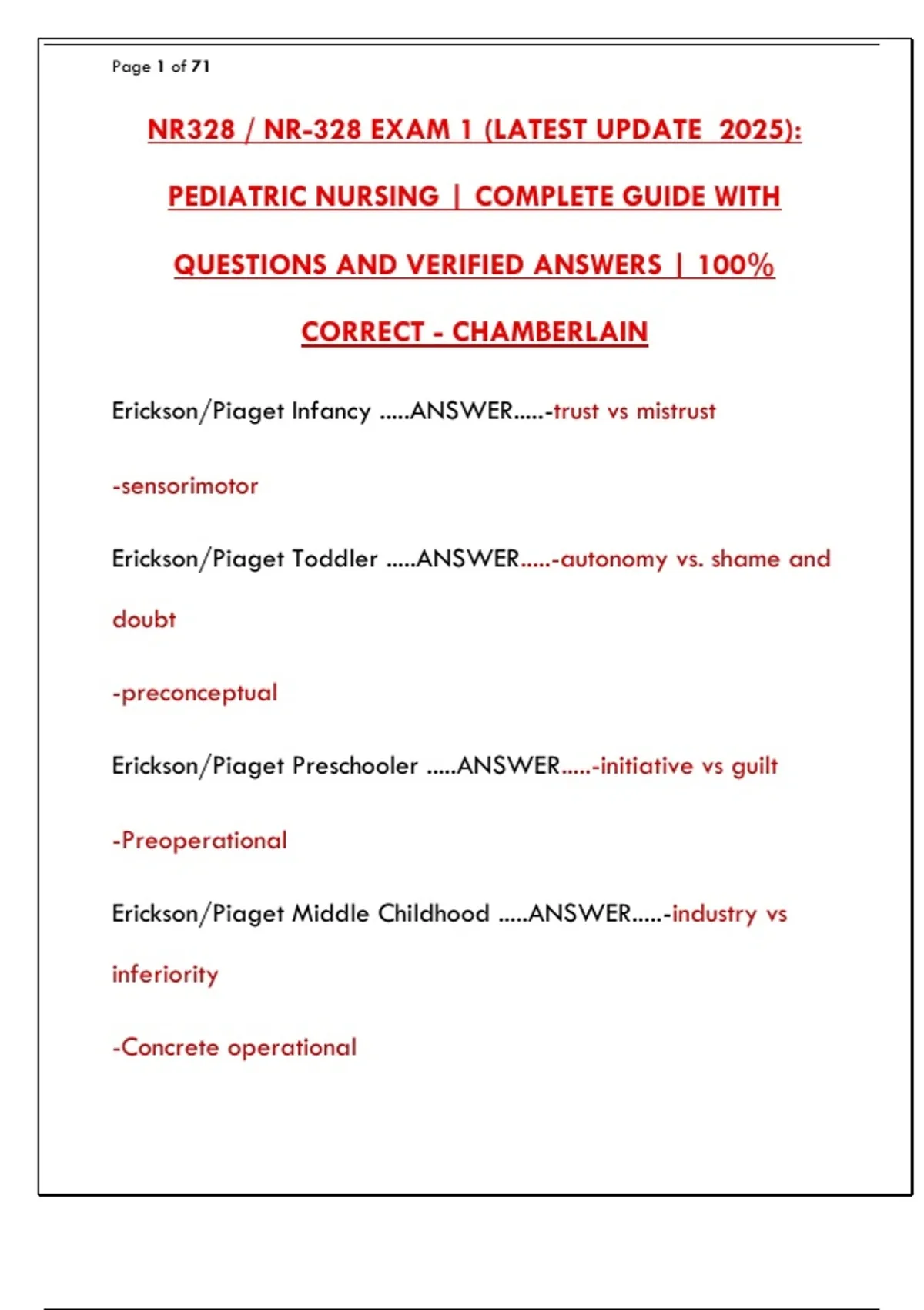 NR 328 Exam 1 Study Guide 2025: Pediatric Nursing Practice Questions & Review