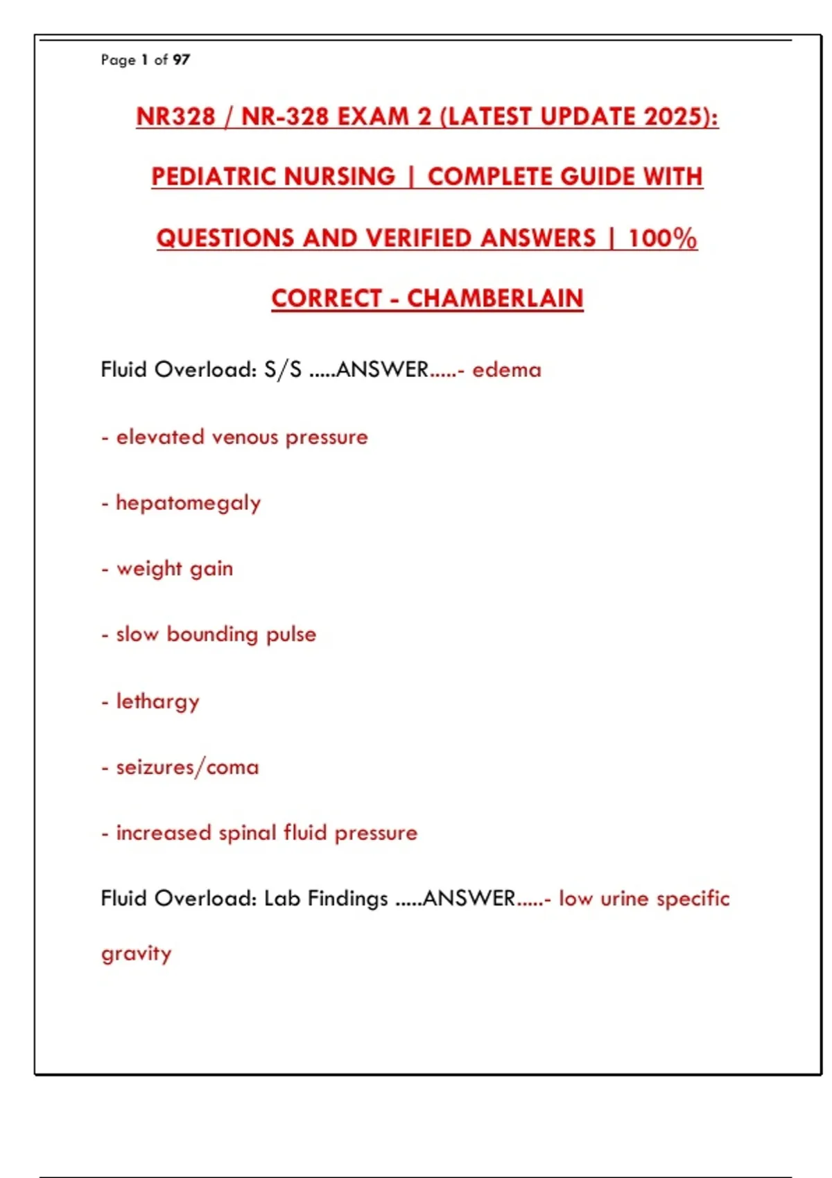 Fluid Overload: Lab Findings .....ANSWER.....- low urine specific
