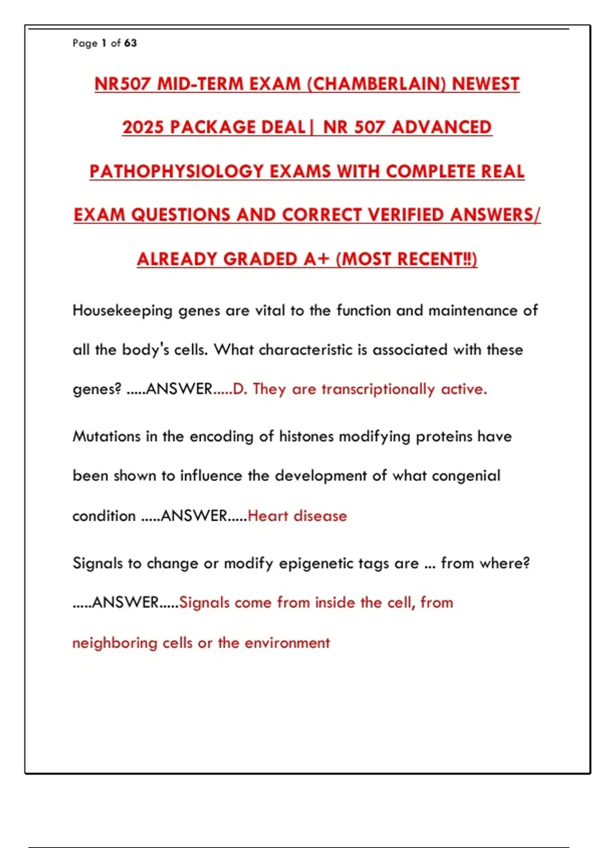 NR507 MID-TERM EXAM (CHAMBERLAIN) NEWEST