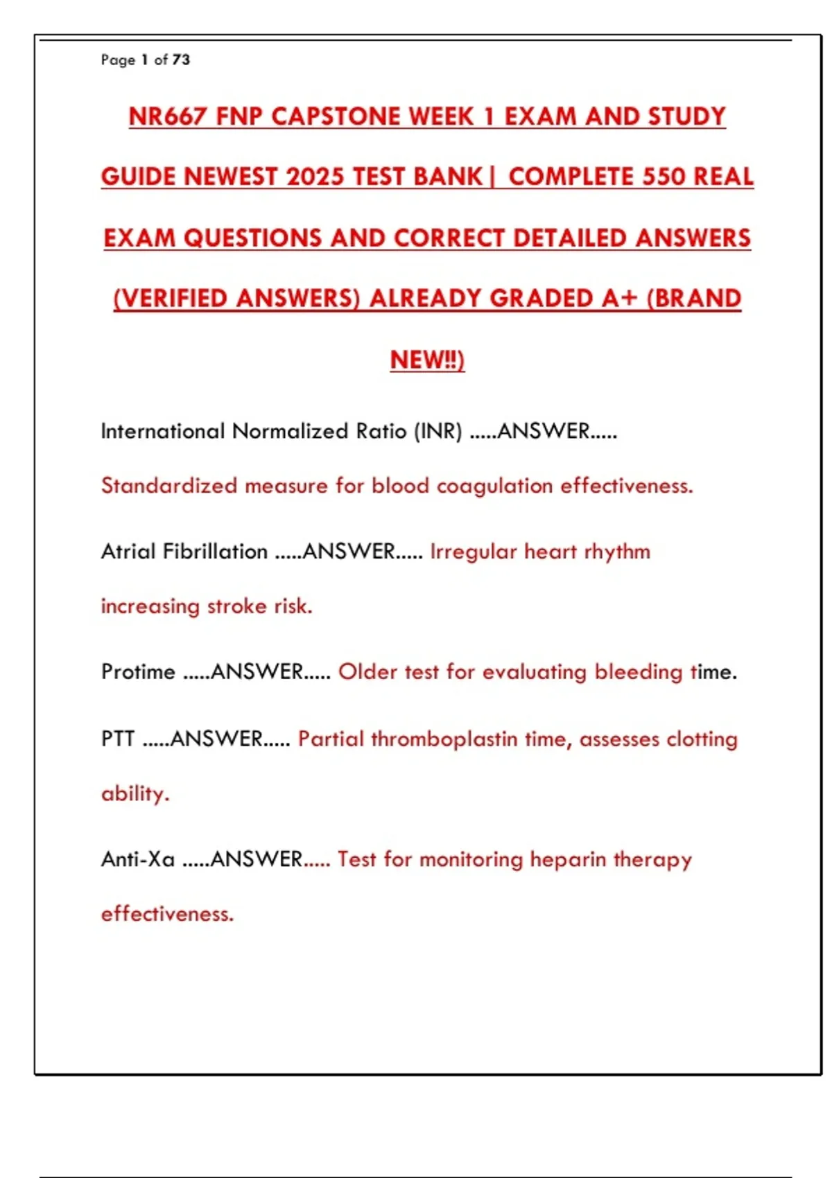 Anti-Xa .....ANSWER..... Test for monitoring heparin therapy