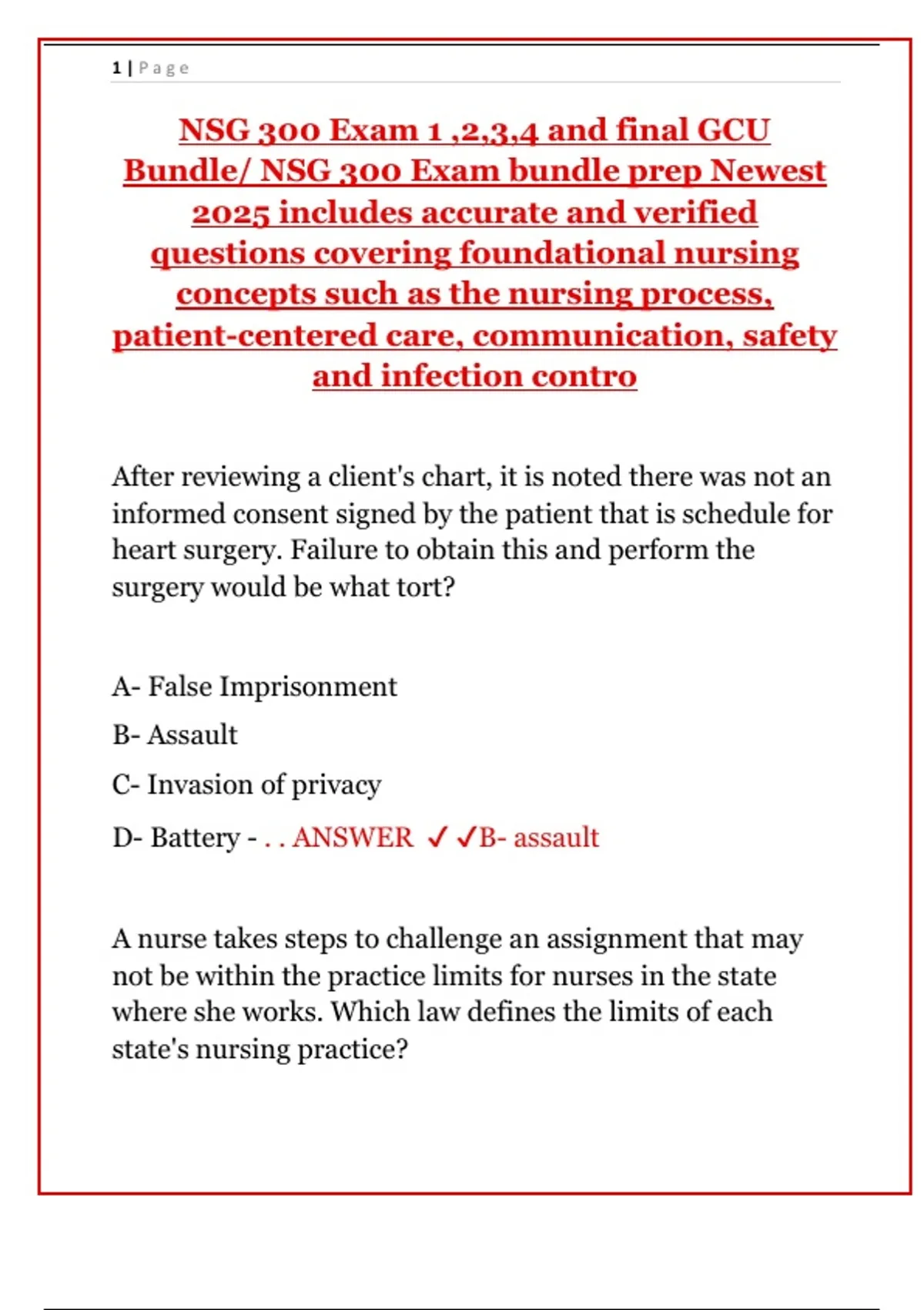 NSG 300 Exam 1 ,2,3,4 and final GCU