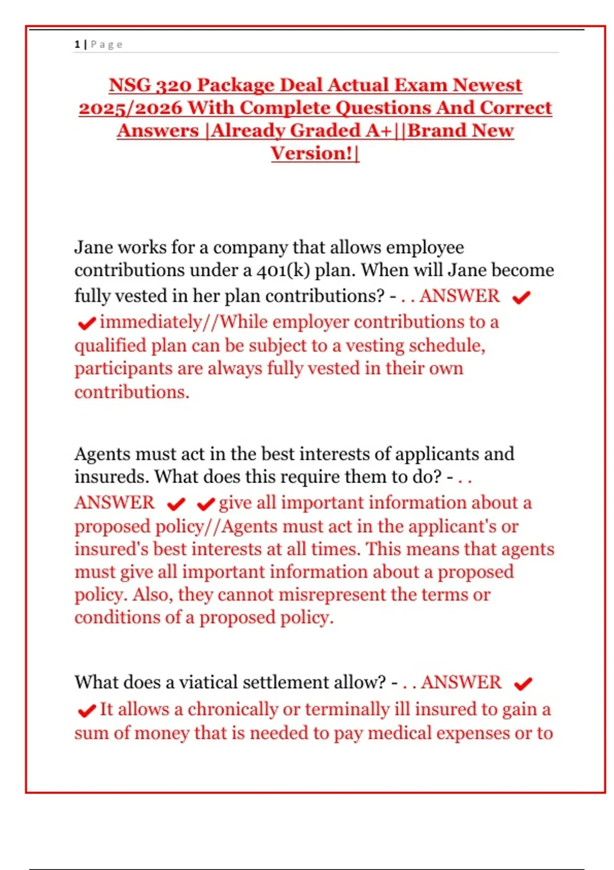 NSG 320 Package Deal Actual Exam Newest
