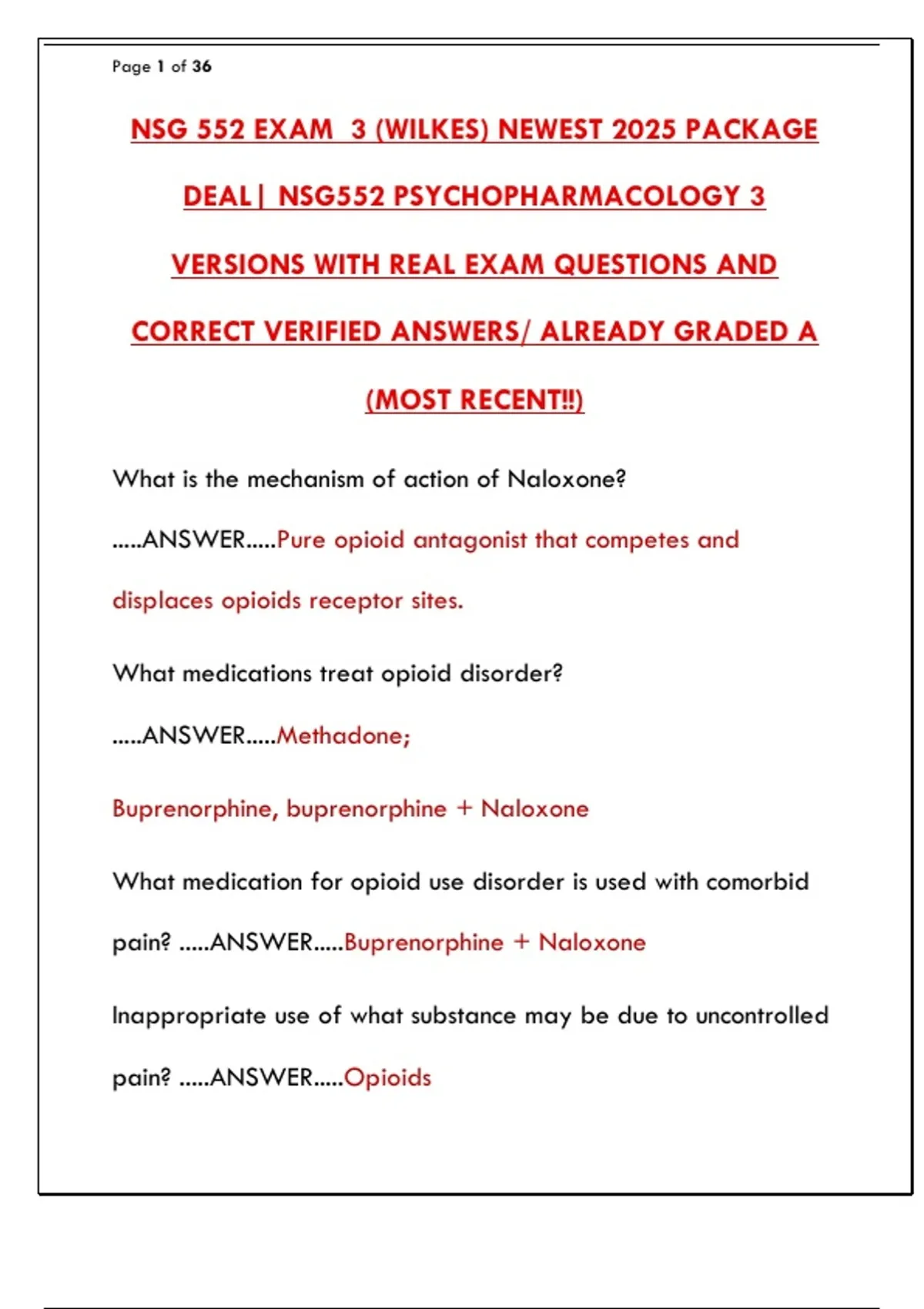 DEAL| NSG552 PSYCHOPHARMACOLOGY 3