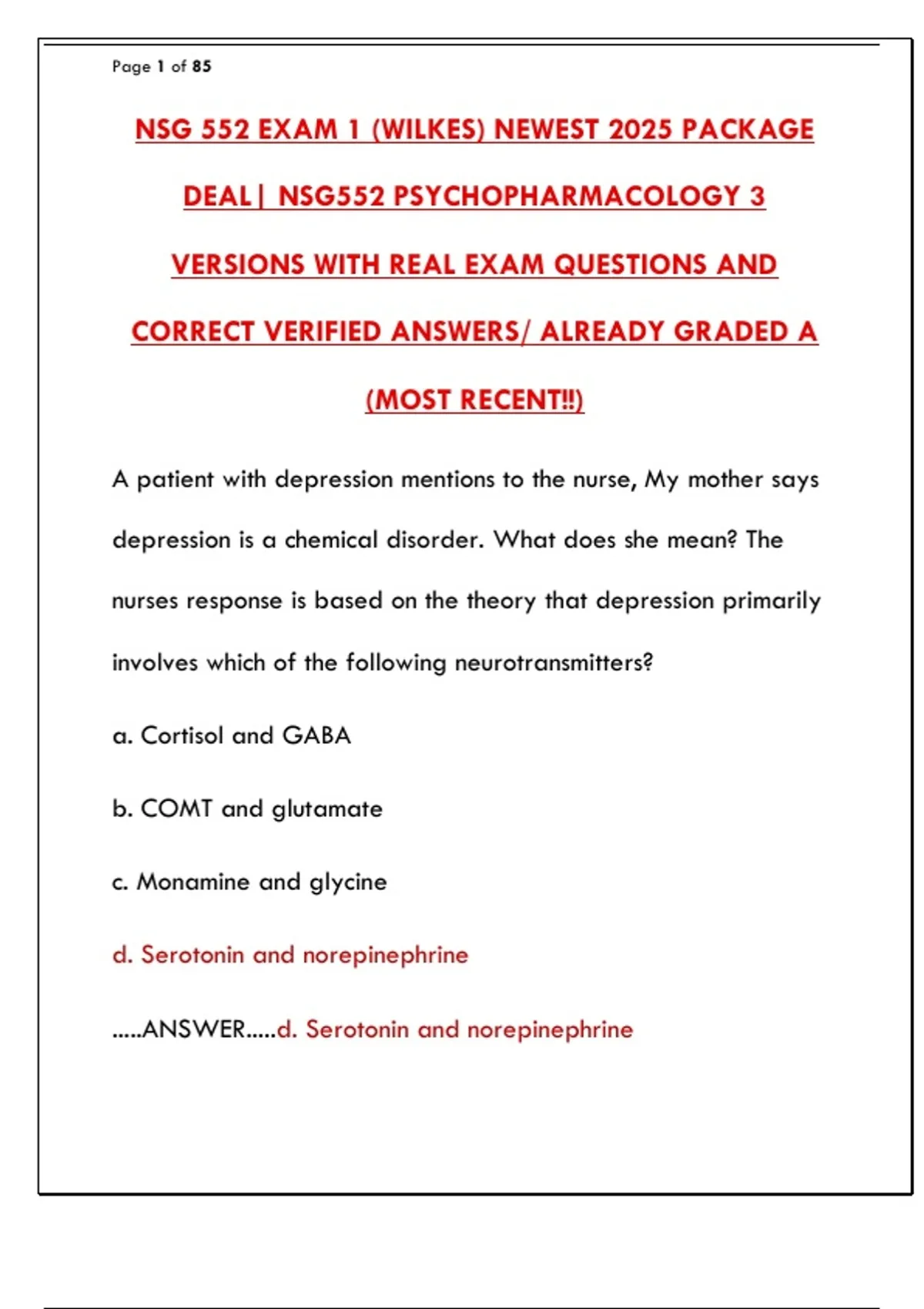 DEAL| NSG552 PSYCHOPHARMACOLOGY 3