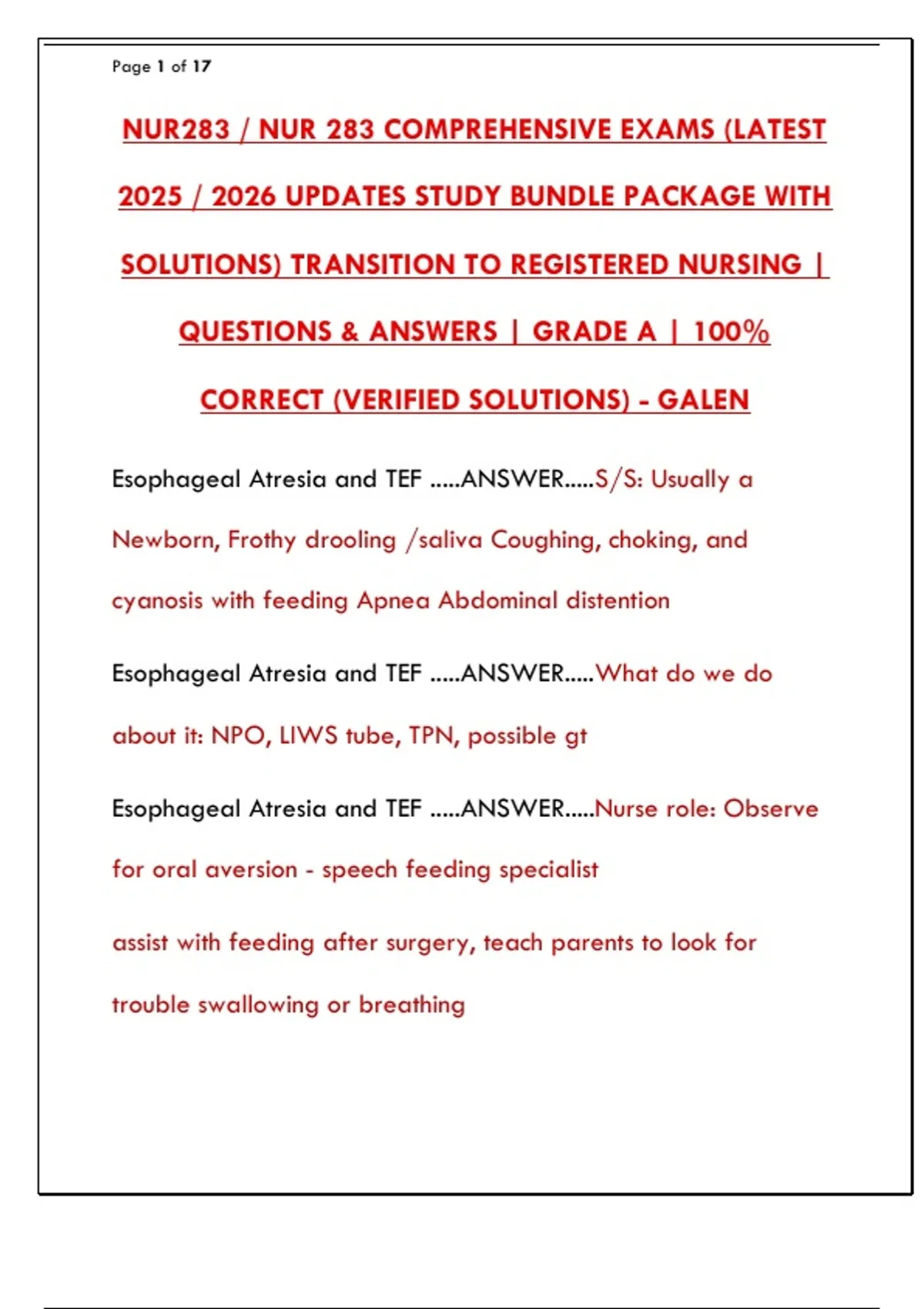 CORRECT (VERIFIED SOLUTIONS) - GALEN