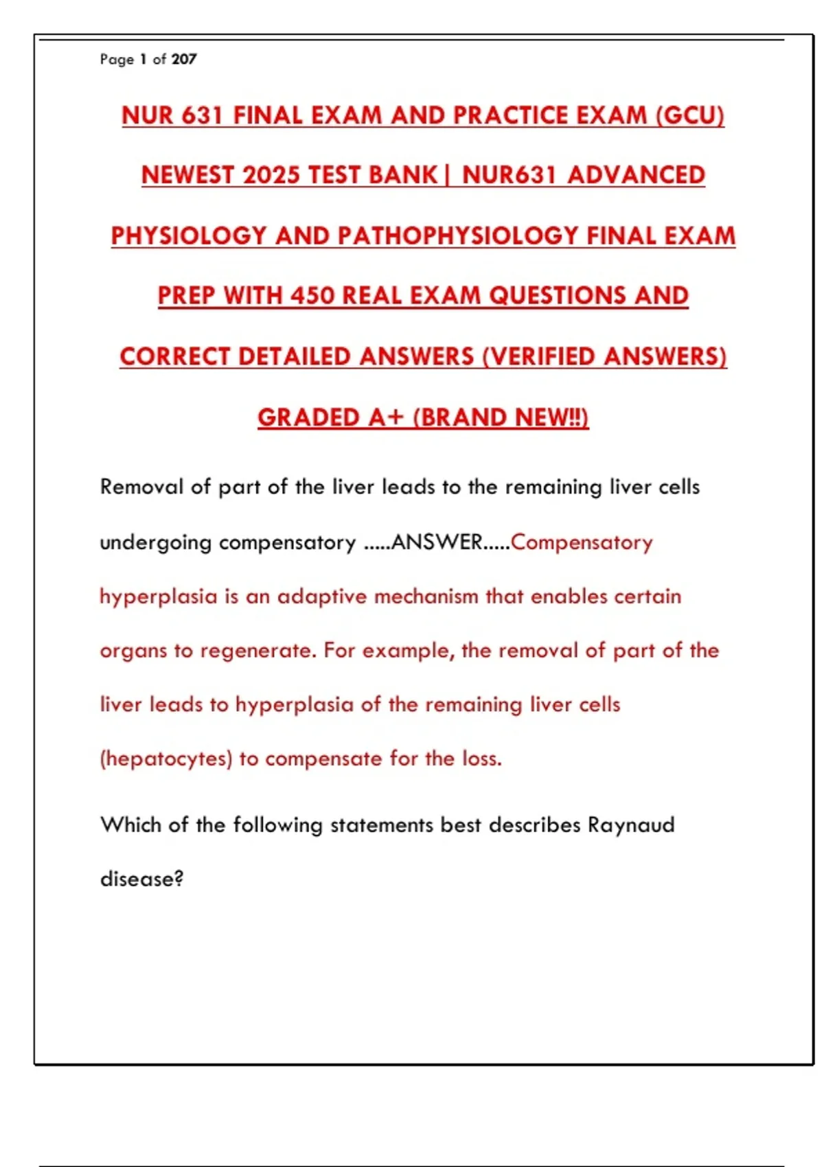 NUR 631 Final Exam Study Guide 2025: Advanced Pathophysiology Practice Questions & Review