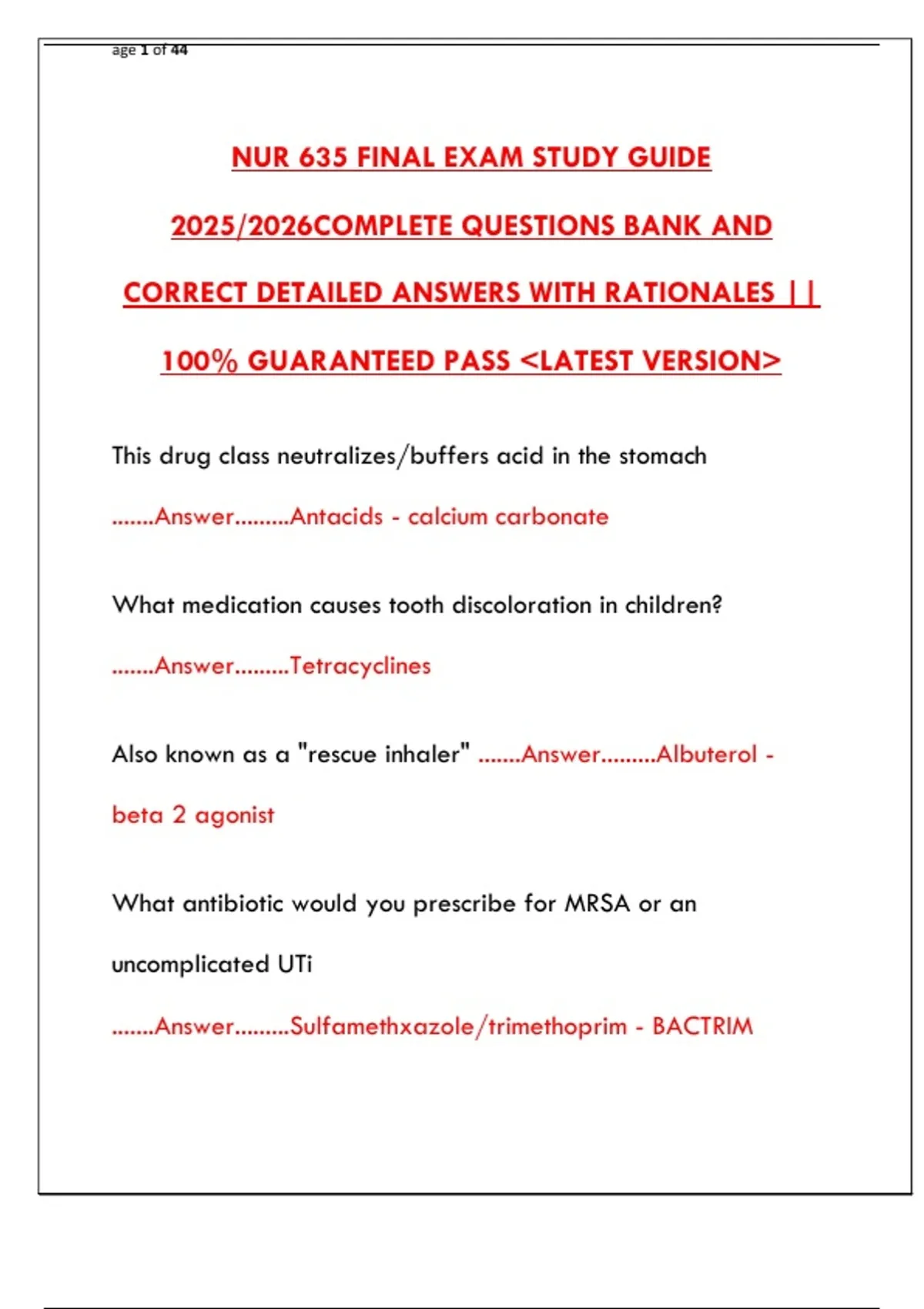 NUR 635 Final Exam Study Guide 2025: Advanced Pharmacology Practice Questions & Review