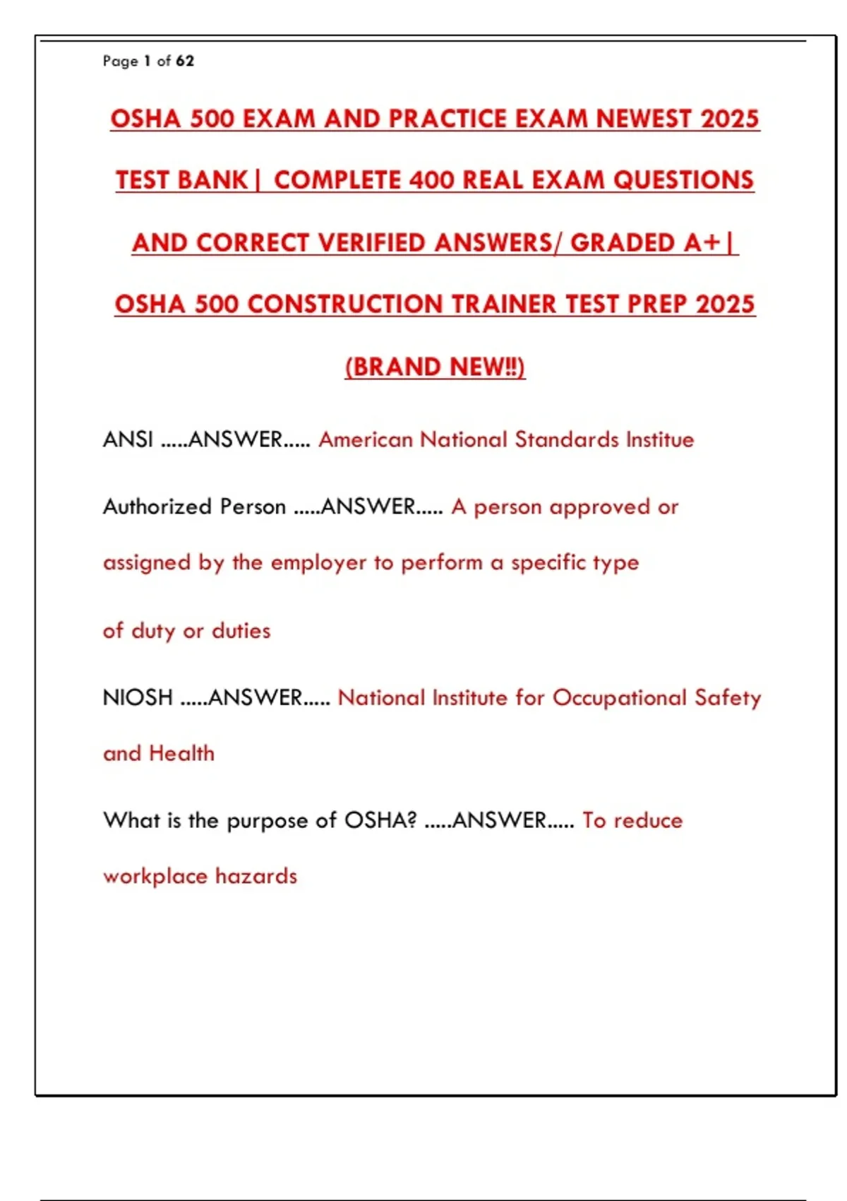 OSHA 500 EXAM AND PRACTICE EXAM NEWEST 2025