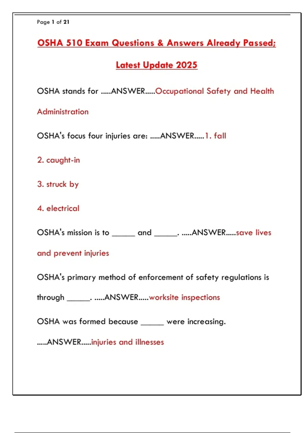 OSHA 510 Exam Questions & Answers Already Passed;