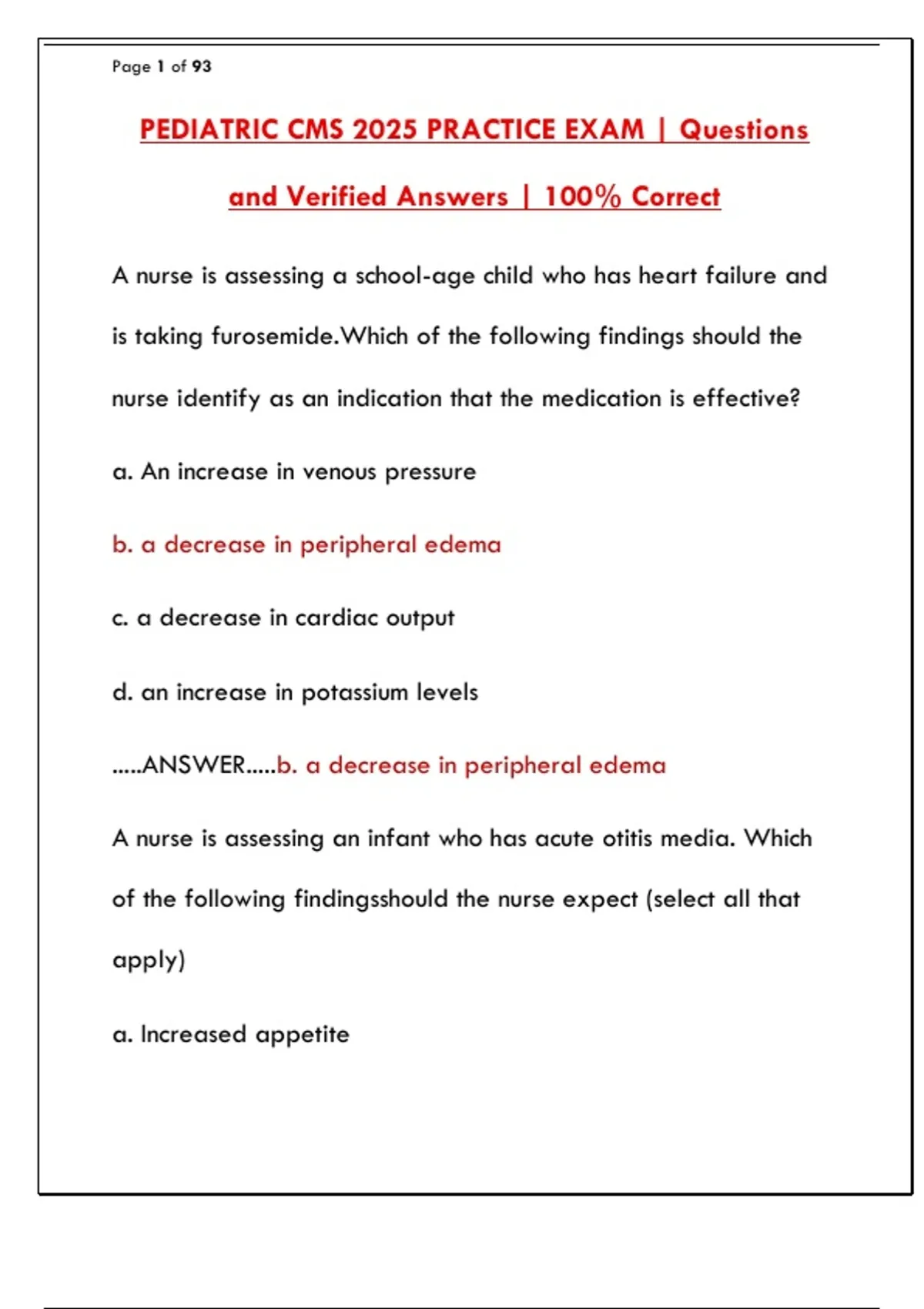 PEDIATRIC CMS 2025 PRACTICE EXAM | Questions