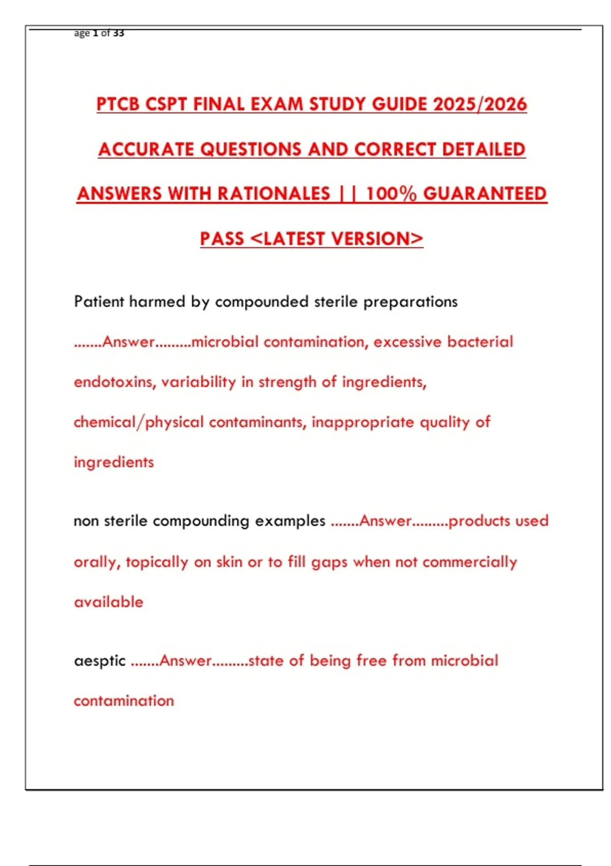 PTCB CSPT FINAL EXAM STUDY GUIDE 2025/2026