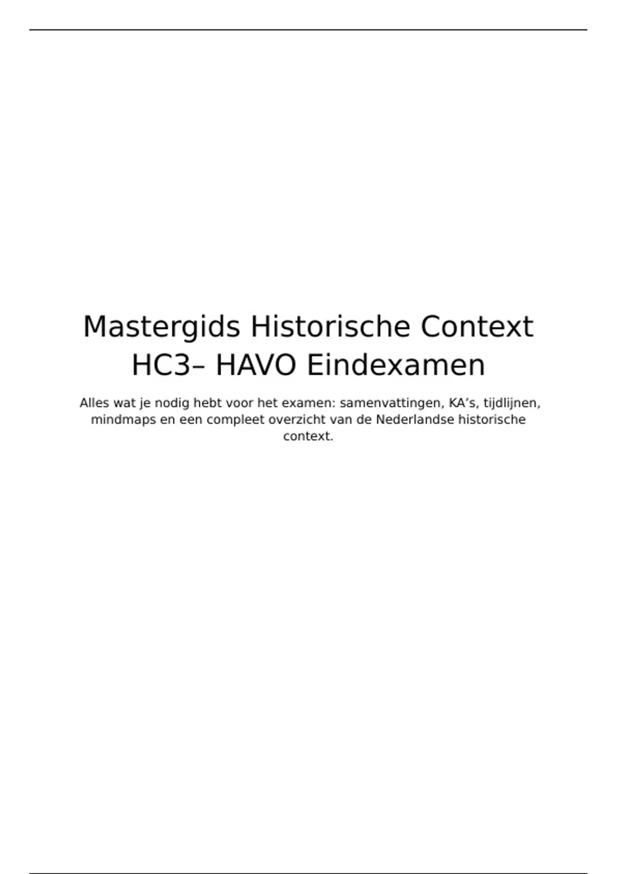 Samenvatting Mastergids Historische Context HC3 - HAVO 5 Eindexamen
