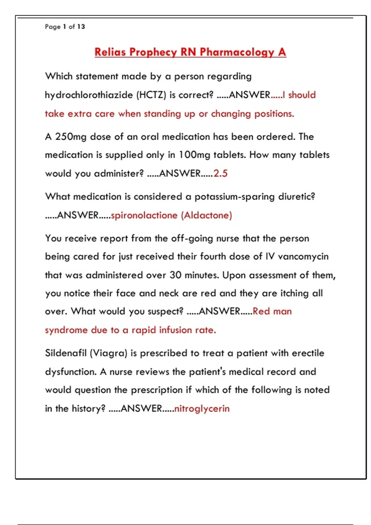 Relias Prophecy RN Pharmacology A