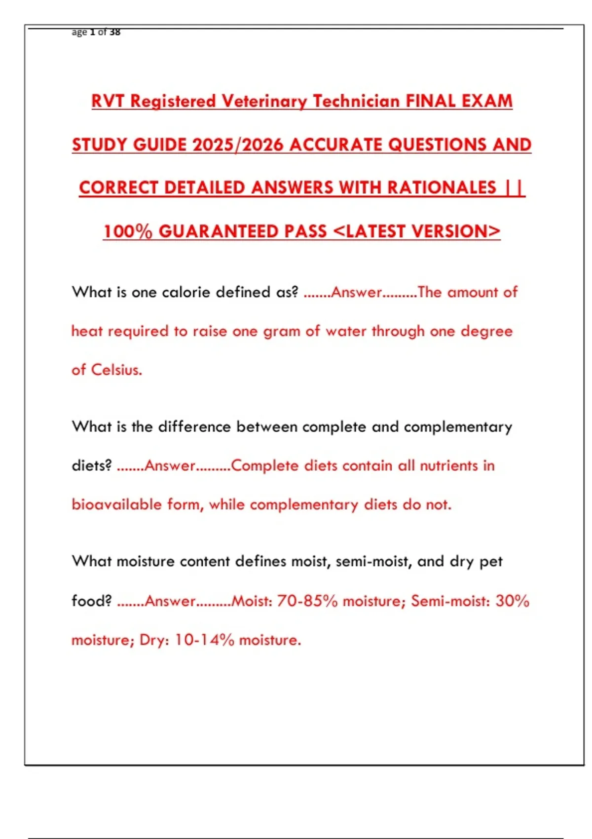 Prepare for your RVT Final Exam. Get a complete study guide with practice questions, detailed rationales, and key concepts for the Registered Veterinary Technician certification exam.