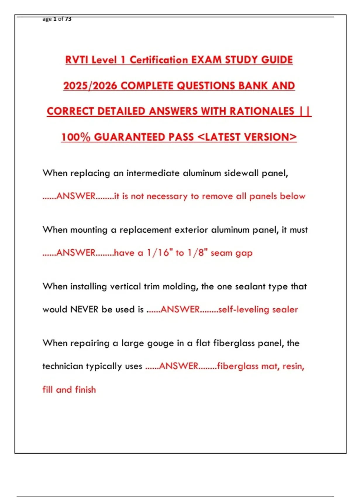 RVTI Level 1 Certification EXAM STUDY GUIDE