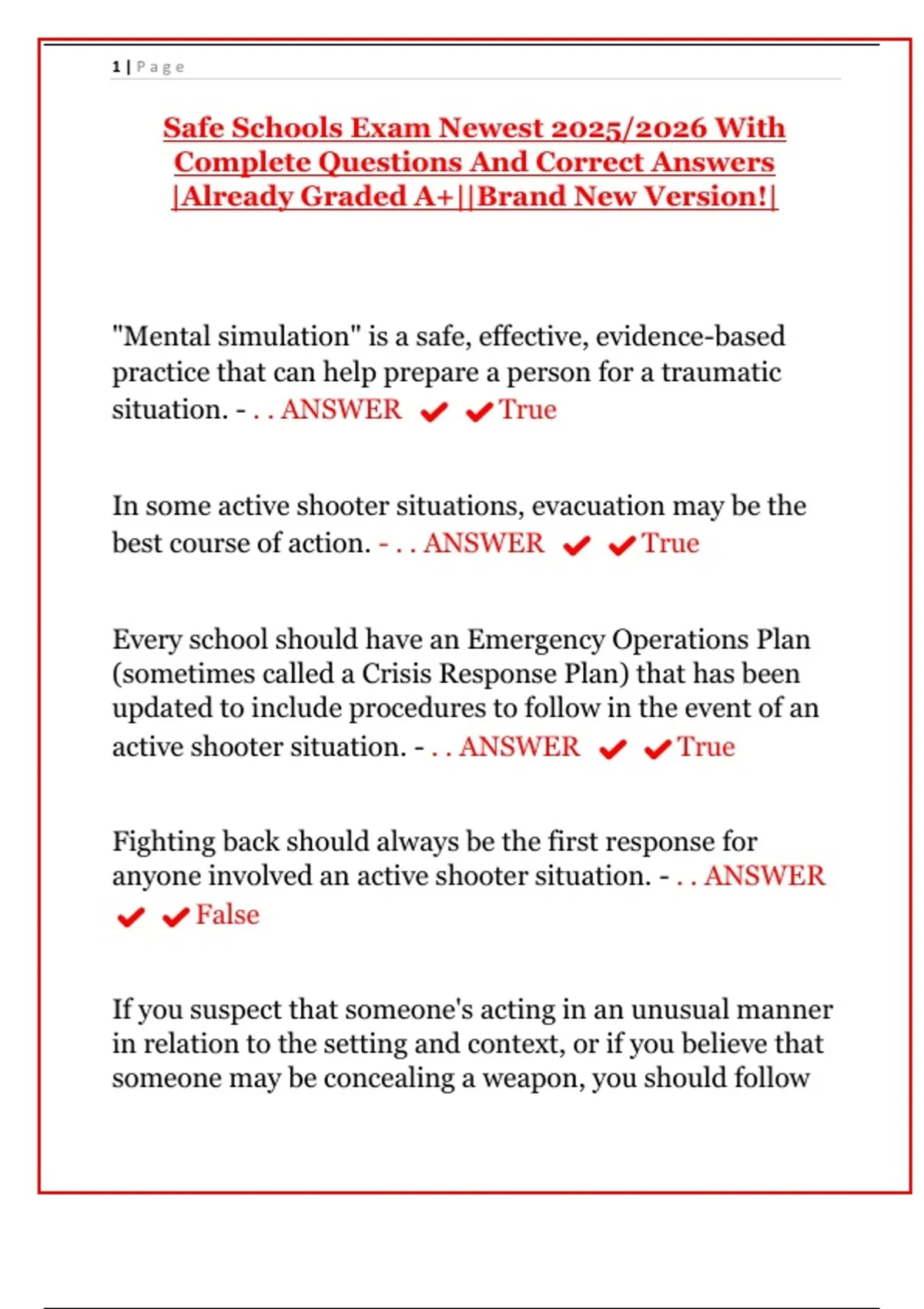 Safe Schools Exam Newest 2025/2026 With