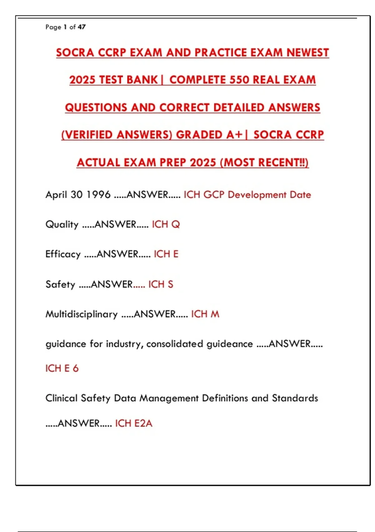 (VERIFIED ANSWERS) GRADED A+| SOCRA CCRP