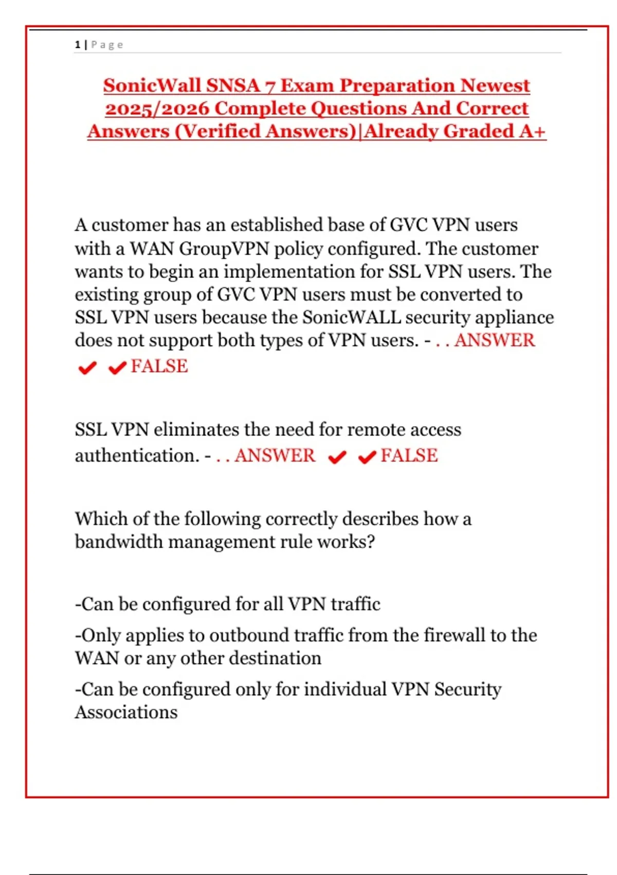 SonicWall SNSA 7 Exam Preparation Newest