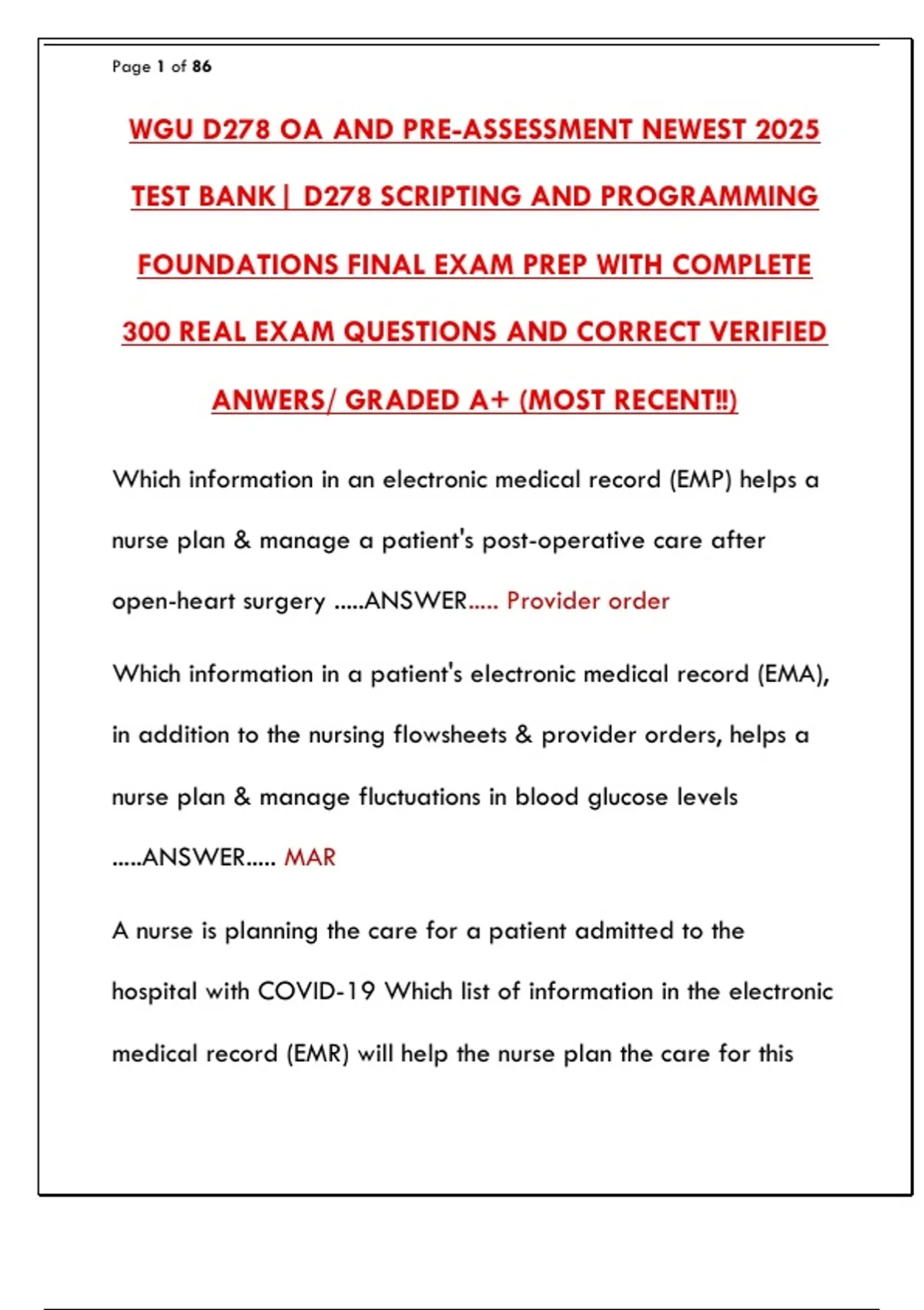 TEST BANK| D278 SCRIPTING AND PROGRAMMING