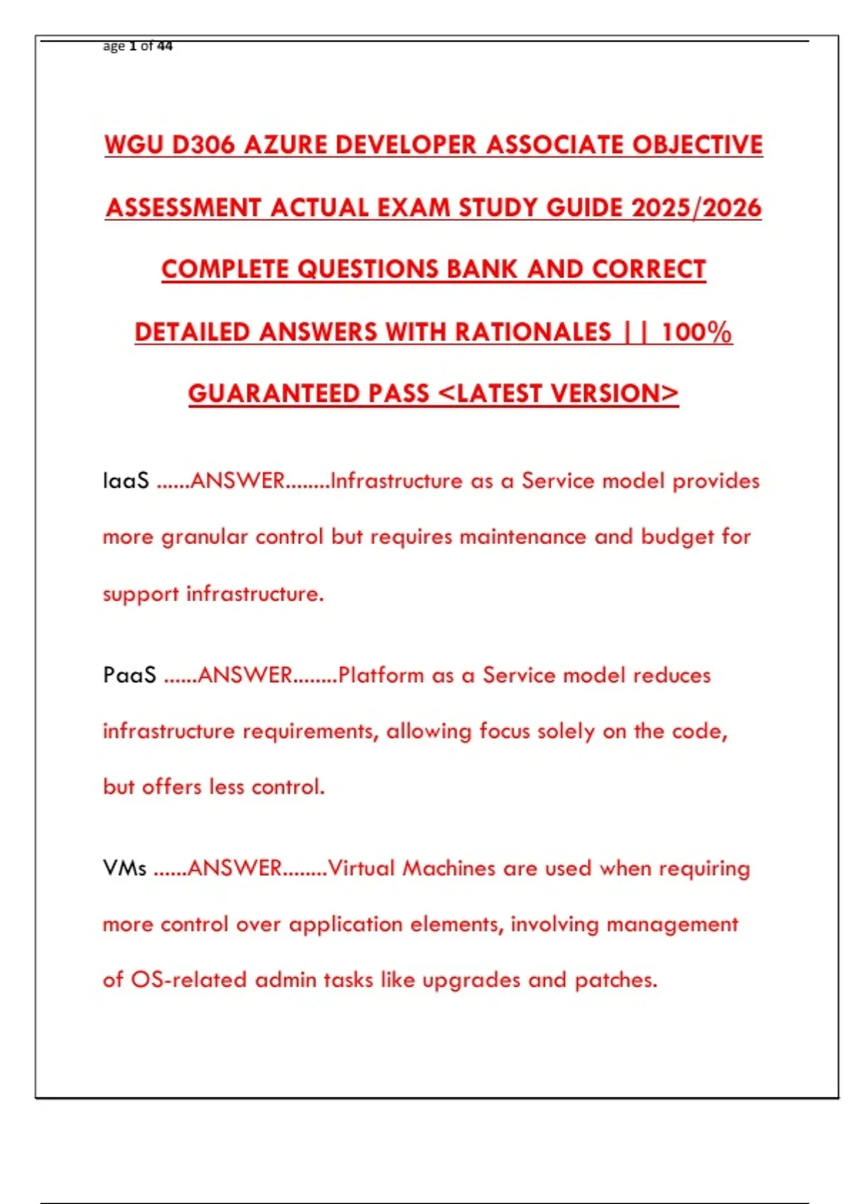 WGU D306 Azure Developer Associate OA: Actual Exam & Study Guide 2025