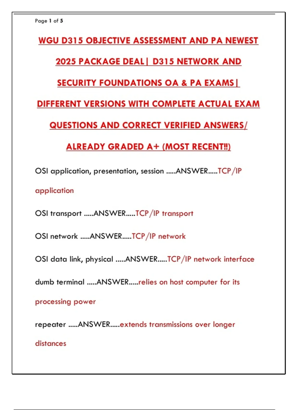 Master the WGU D315 Networks assessments with the newest 2025 package deal. Includes complete practice exams for both the OA and PA, covering network models, protocols, security, and troubleshooting to ensure you pass on your first attempt.