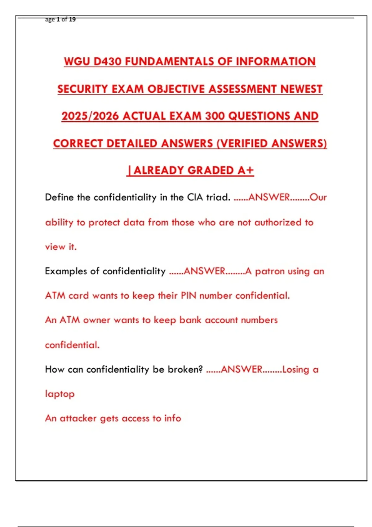 WGU D430 FUNDAMENTALS OF INFORMATION