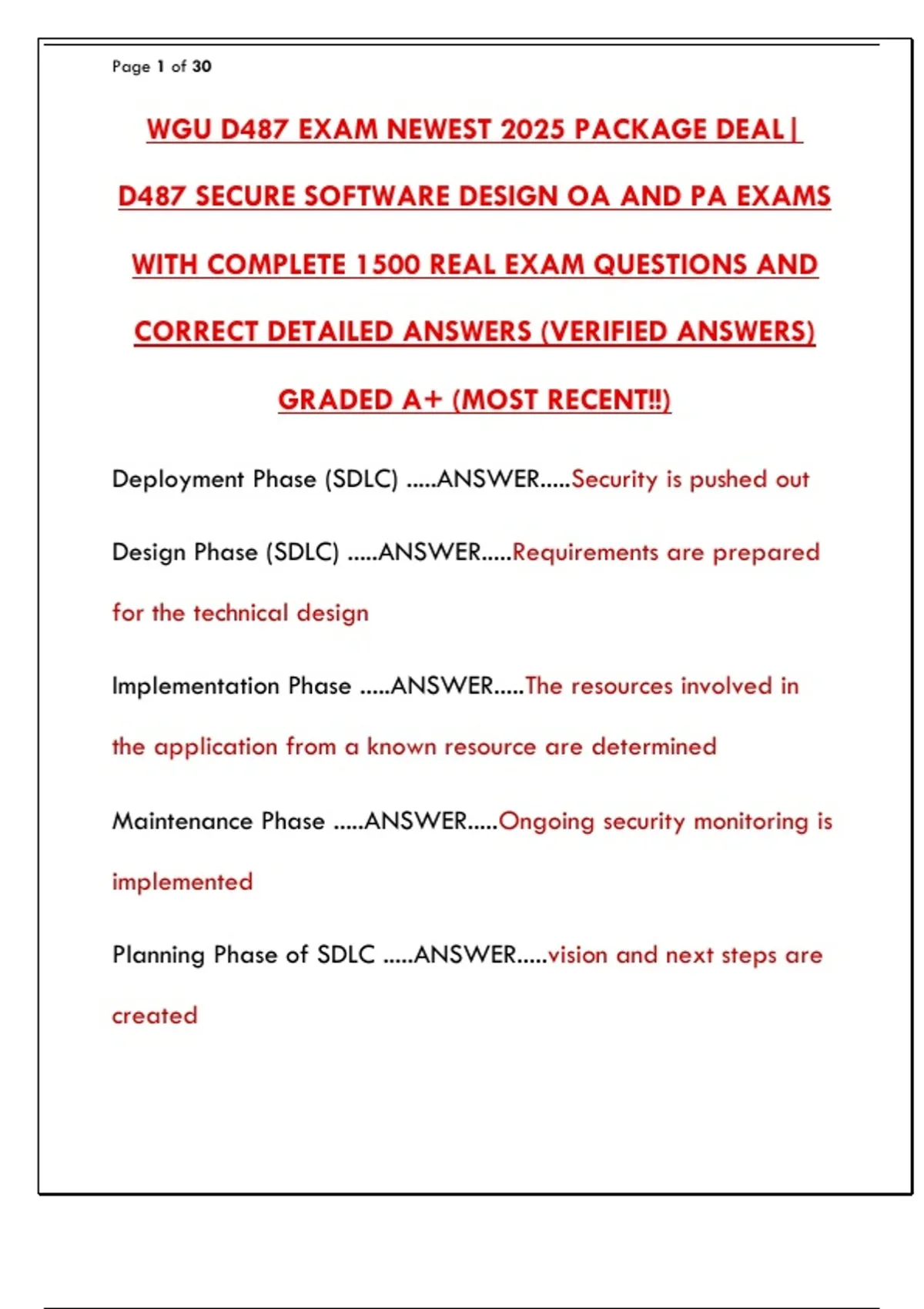 D487 SECURE SOFTWARE DESIGN OA AND PA EXAMS