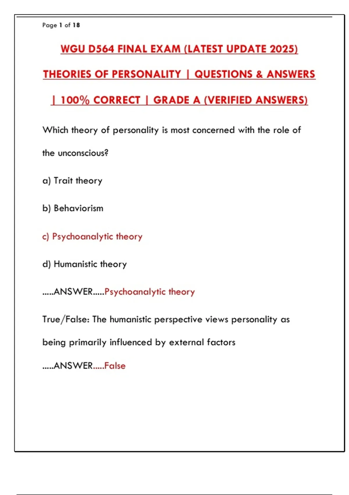 THEORIES OF PERSONALITY | QUESTIONS & ANSWERS