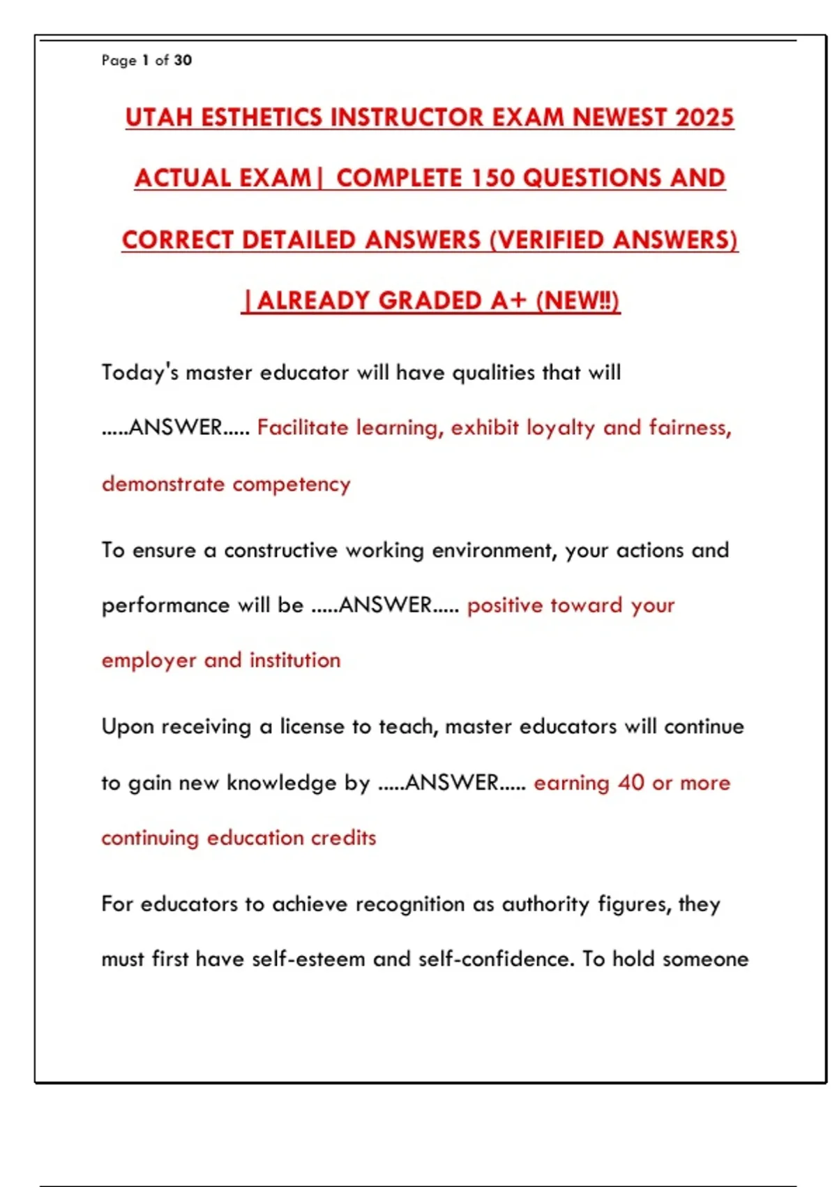 UTAH ESTHETICS INSTRUCTOR EXAM NEWEST 2025