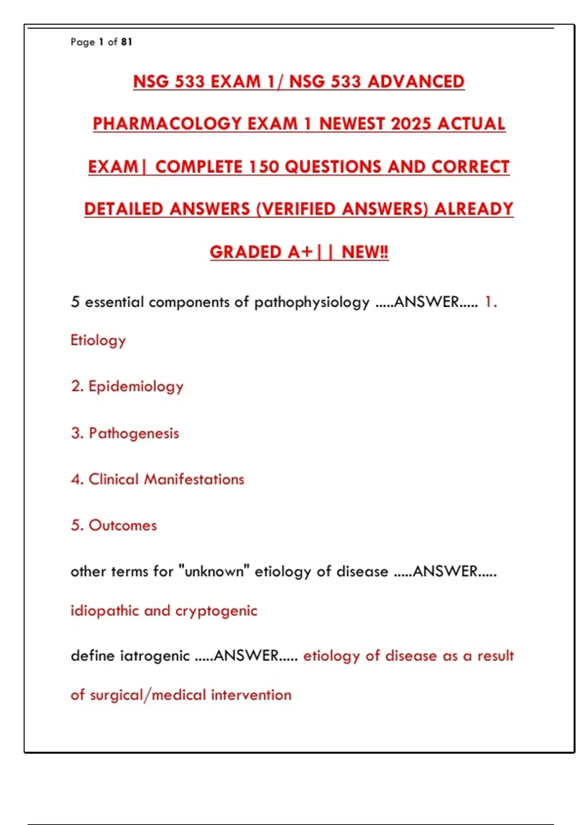 NSG 533 Exam 1 2025: Study Guide & Practice Questionsb