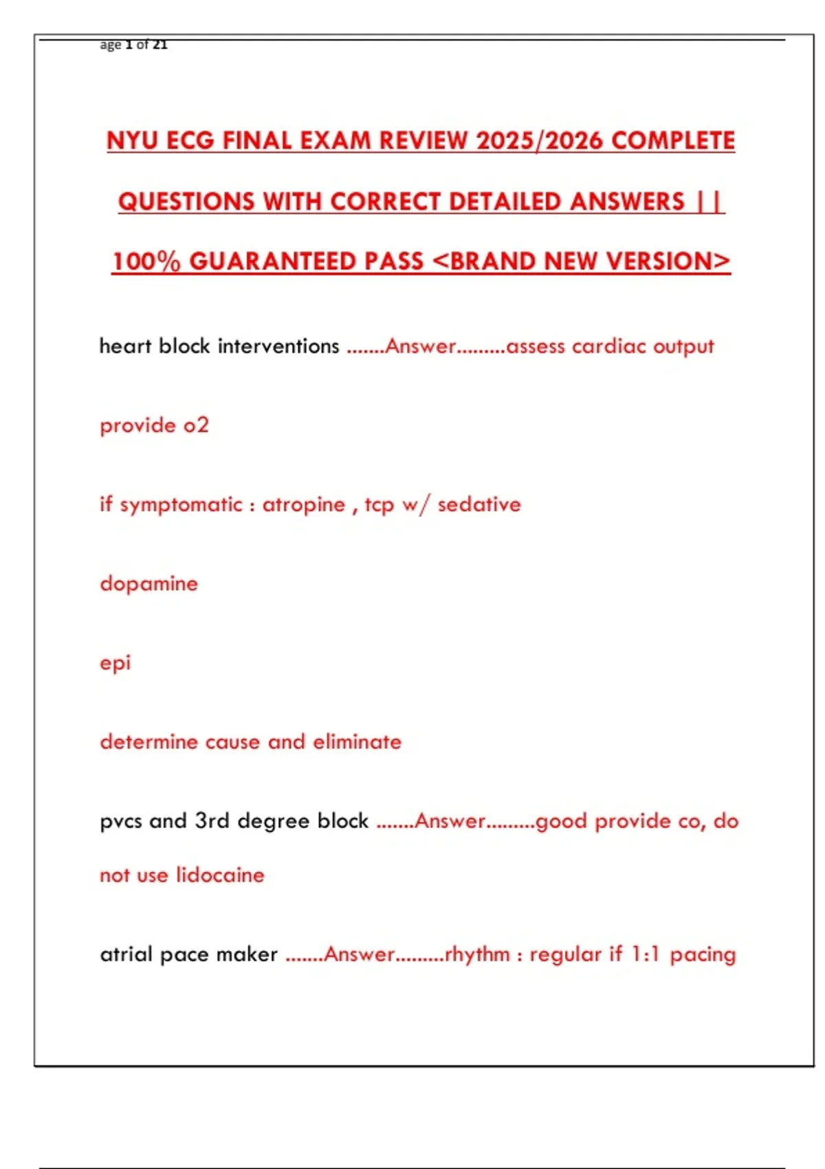 NYU ECG FINAL EXAM REVIEW 2025/2026 COMPLETE