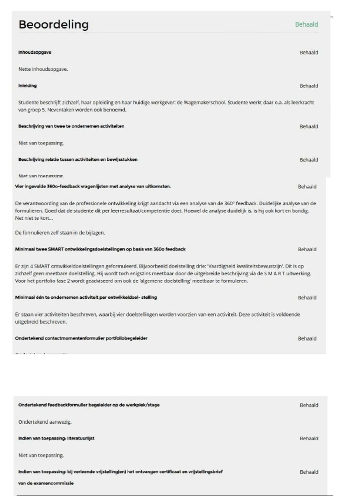 Dit document bevat een volledig uitgewerkt portfolio voor fase 1 van de opleiding HBO AD Officemanagement. Het portfolio bestaat uit een uitgebreide analyse van 360-graden feedback, inclusief reflecties op professionele vaardigheden zoals samenwerken, initiatief, zelfontwikkeling en kwaliteitsbewustzijn. Daarnaast bevat het SMART geformuleerde ontwikkeldoelen, onderbouwde acties en bijlagen met feedbackformulieren van collega’s, leidinggevende, omgeving en de student zelf. Het document geeft een helder beeld van persoonlijke groei, professionele houding en vaardigheden. Ideaal voor studenten die een vergelijkbaar portfolio moeten opstellen of voorbeelden zoeken van reflecties, SMART-doelen en analyse van 360° feedback.