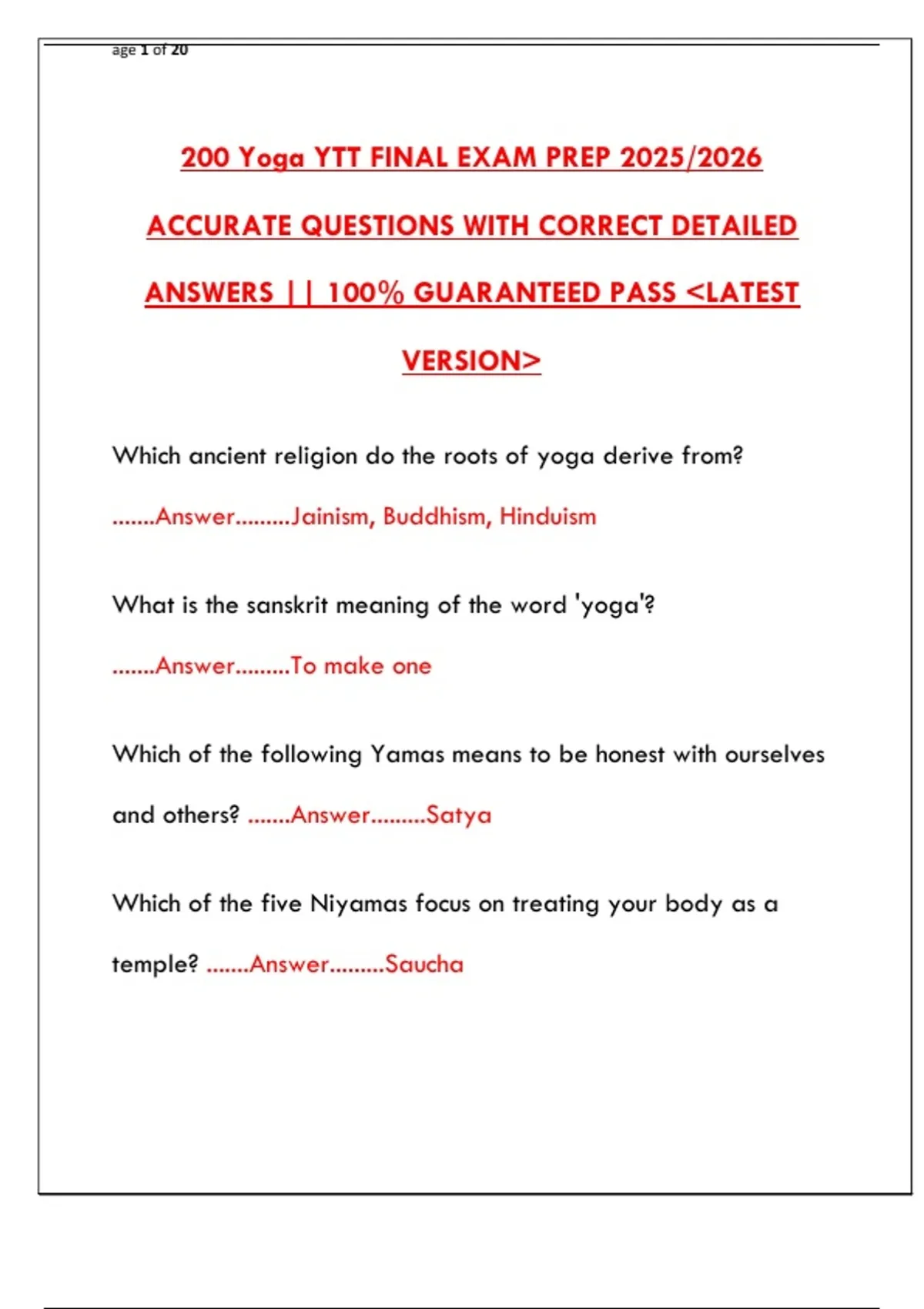 200 Yoga YTT FINAL EXAM PREP 2025/2026